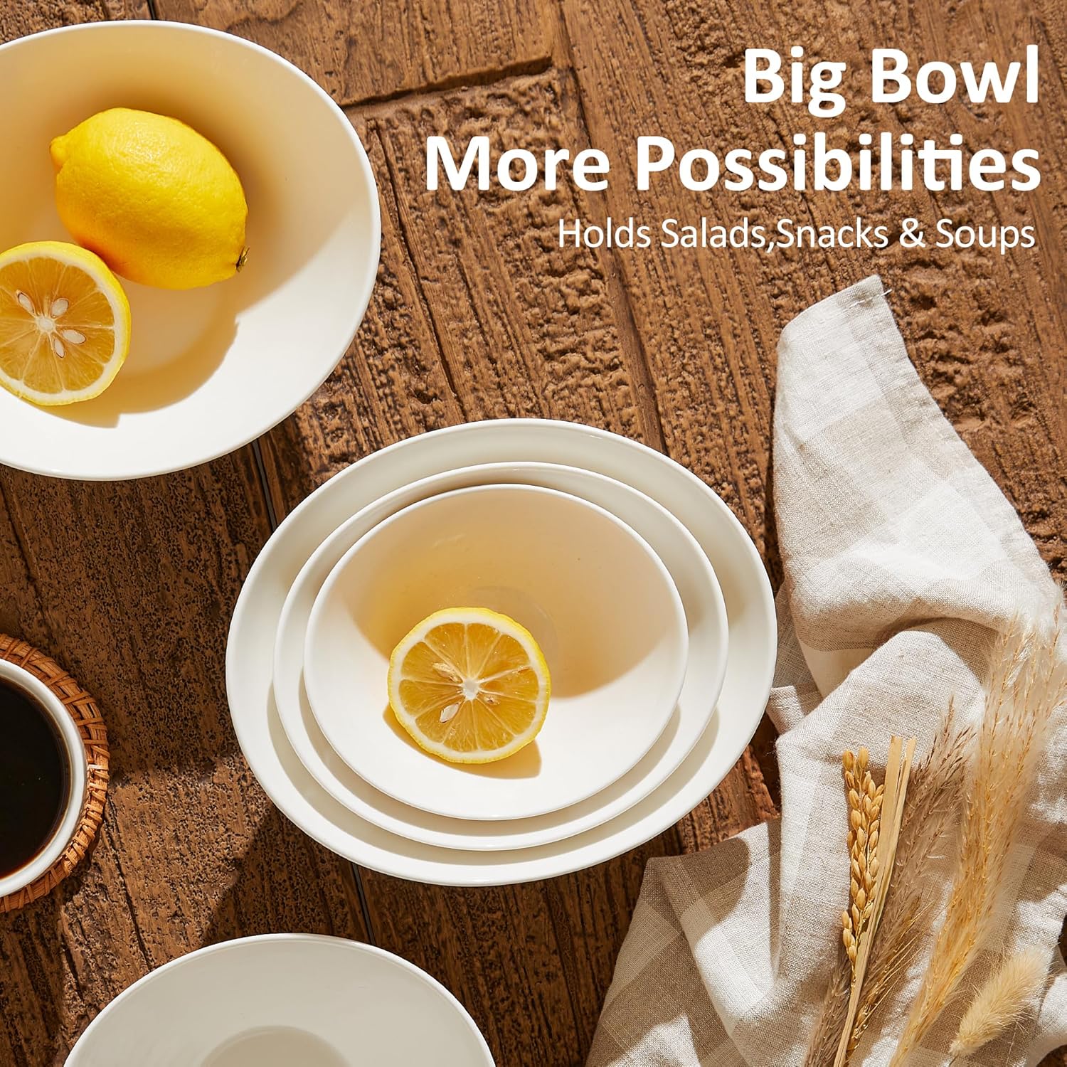 Teocera 7 Inch Salad Bowls Set of 6, 18 oz Large Soup Bowls– Microwave & Dishwasher Safe, for Pasta, Snacks, White