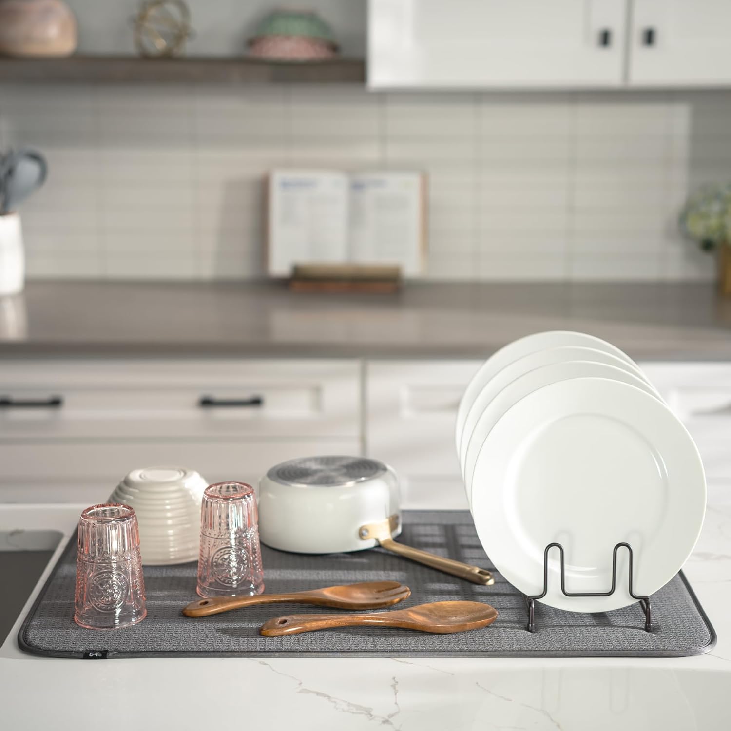 - Dish drying mats for kitchen counter are reusable, machine washable, and easy to store for kitchen organization; durable construction will not chip or break like a stone dish drying mat for kitchen