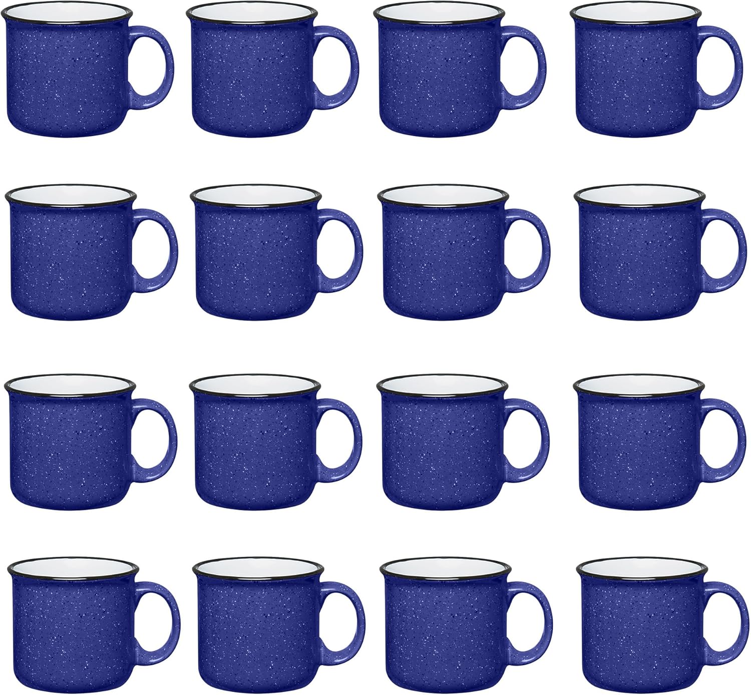 Set of 16 Ceramic Campfire Mugs – 15 Oz, Royal Blue – Coffee & Tea Cups for Home, Work, Travel, Camping – Customizable, Great for DIY, Events, Companies