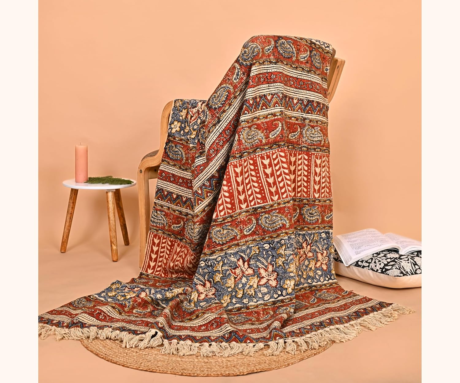 - Handcrafted Floral Block Print by SARVAA: This cotton throw features a hand-applied Indian block print, showcasing delicate floral patterns that add a warm, artisanal touch to any spaceβfrom bedrooms to cozy reading corners.