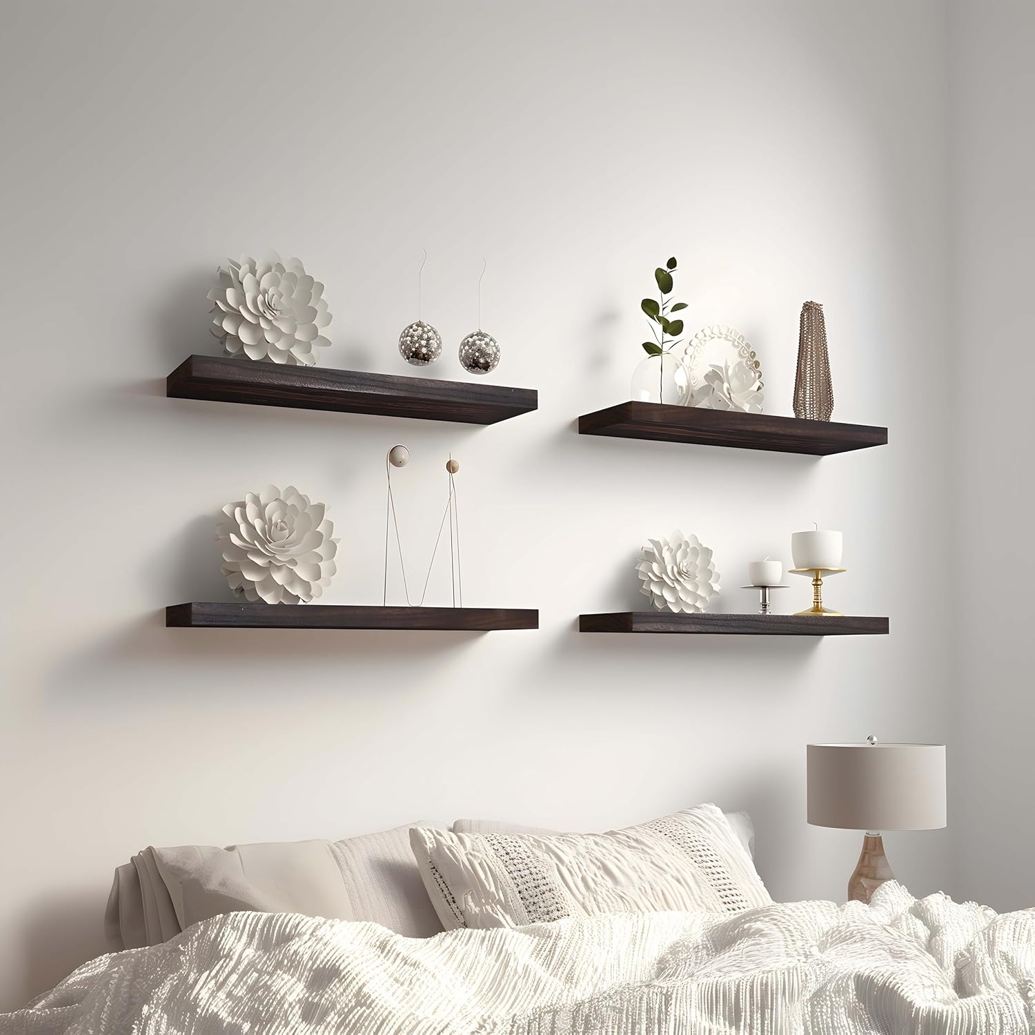 Brown Wood Floating Shelves for Wall Rustic Wall Shelves for Bedroom Set of 6