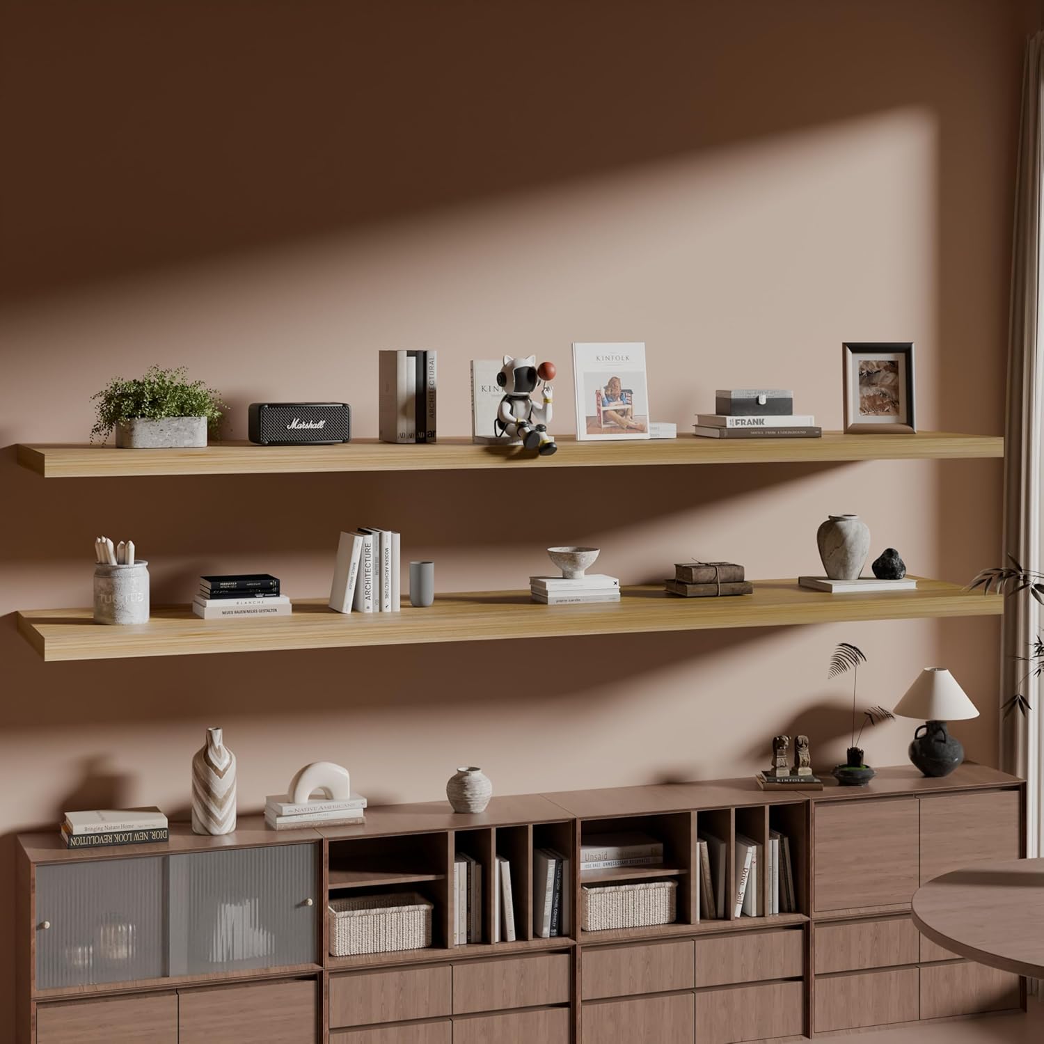 IAE Floating Wall Shelves 72 inch,Bathroom Shelves Wall Mounted,Invisible Shelves Floating Kitchen Shelves,Wooden Wall Shelves with Brackets for Living Room Wall Mounted,Easy Install,Set of 2,Natural