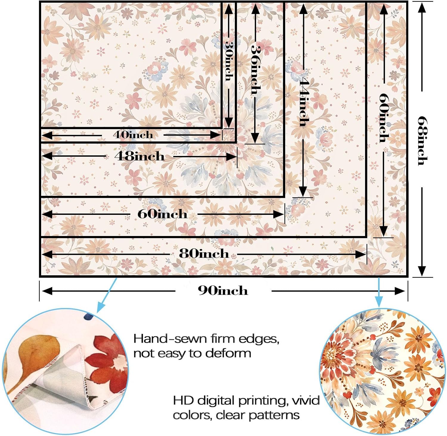 - Versatile Size Options: Our boho floral tapestries are available in five sizes to fit various spaces: XXS: 40'' x 30'', XS: 48'' x 36'', S: 60'' x 44'', L: 80'' x 60'', and XL: 90'' x 68''. Perfect for bedrooms, living rooms, dorm rooms, and more