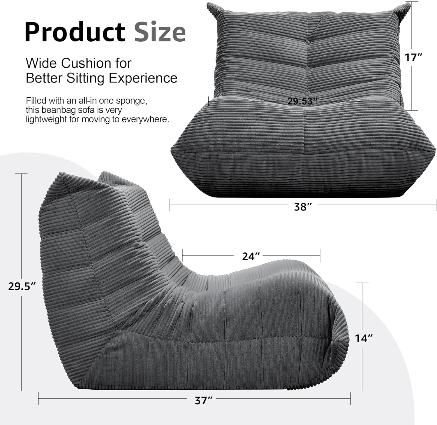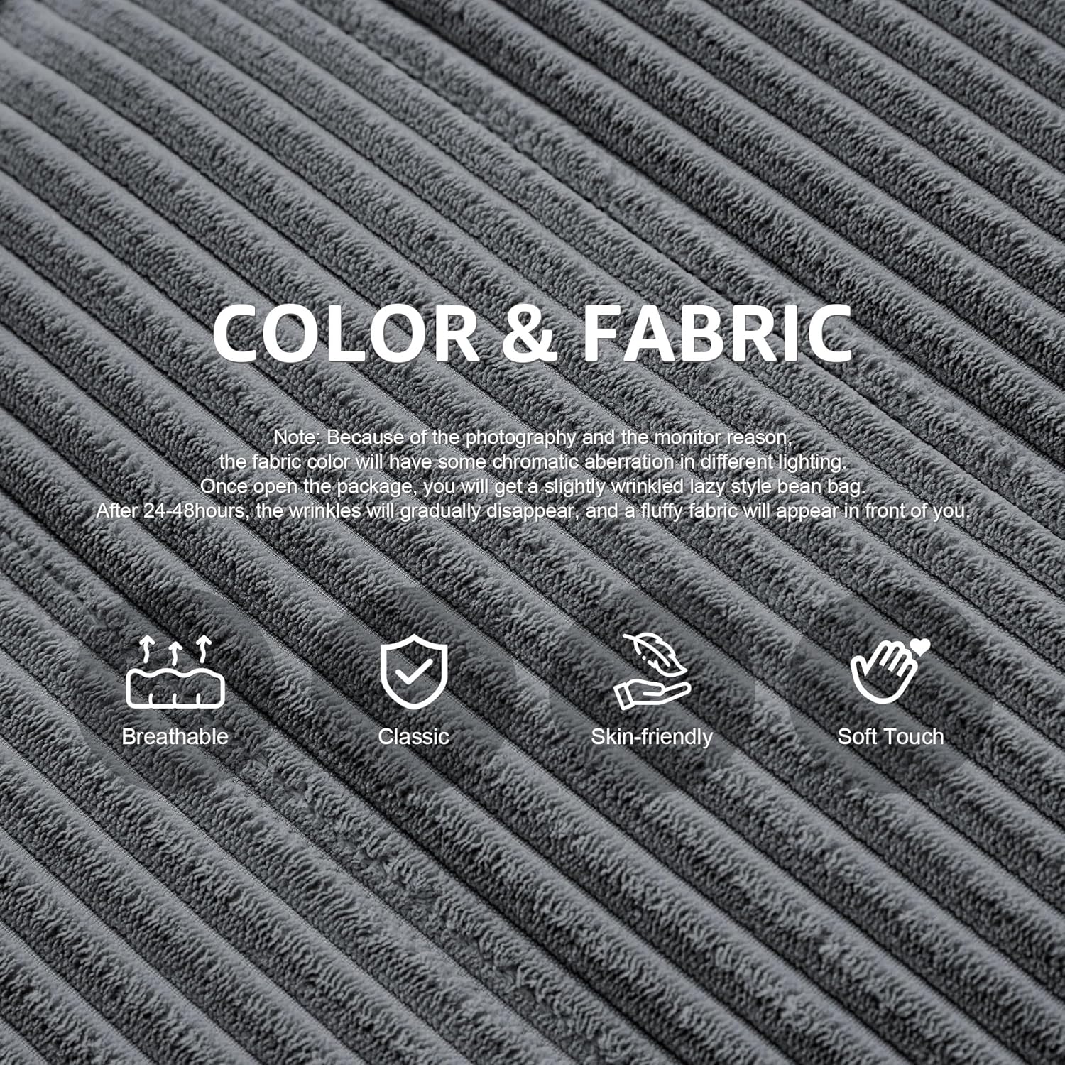 Bean Bag Chairs for Adults Giant Bean Bag Chair Memory Foam BeanBag Chair Big Bean Bag Sofa with Filler Faux Fur Fireside Beanbags Lazy Sofa for Living Room Bedroom Dorm Office (Grey Corduroy)