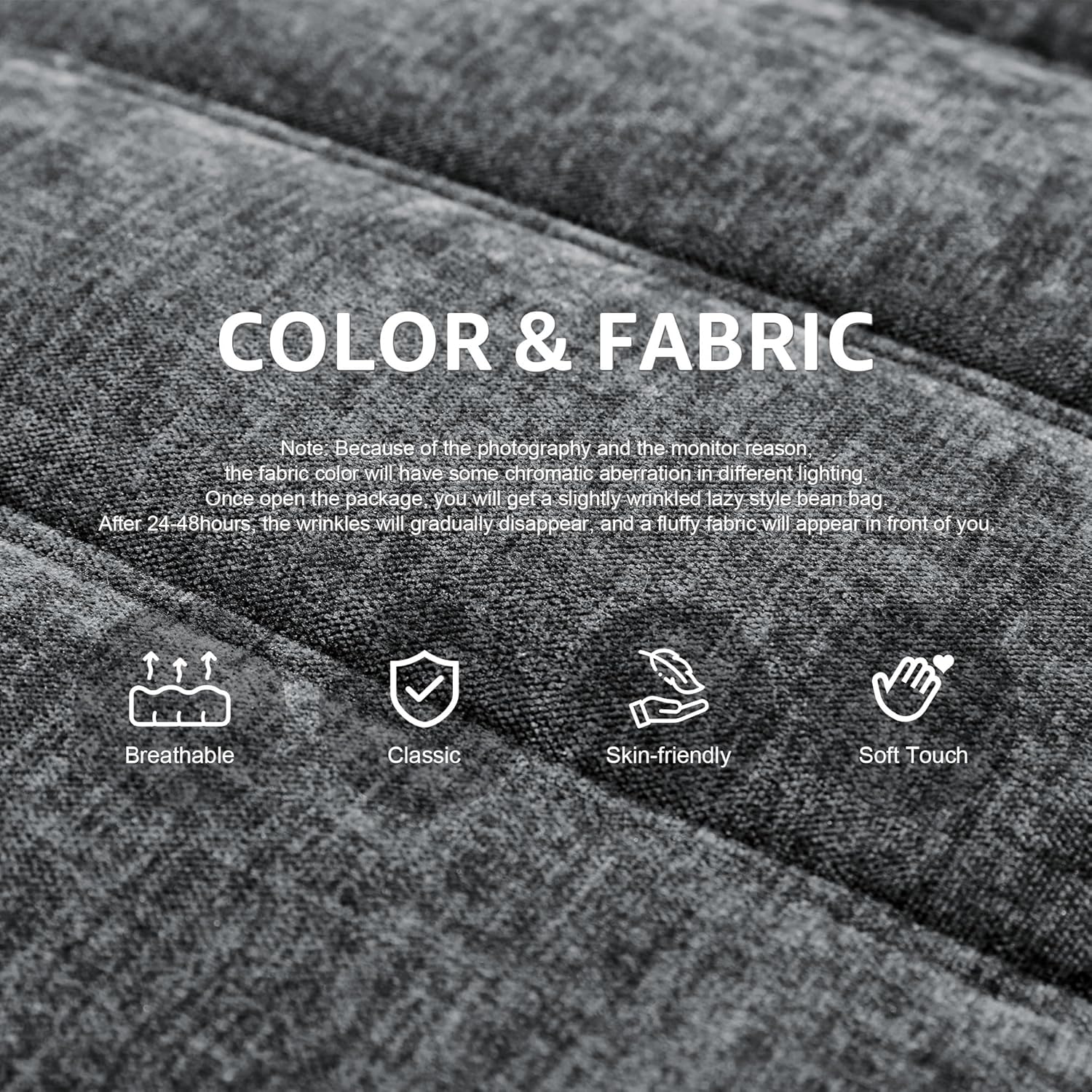 Bean Bag Chairs for Adults Giant Bean Bag Chair Memory Foam BeanBag Chair Big Bean Bag Sofa with Filler Faux Fur Fireside Beanbags Lazy Sofa for Living Room Bedroom Dorm Office (Darkgrey Chenille)