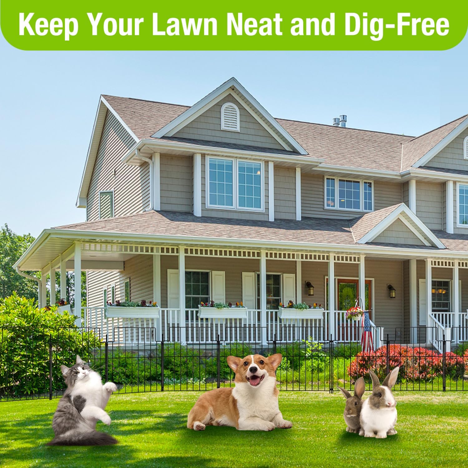 - Multi-Animal Safety Barrier:Protect your plants and pets with this effective dog fence outdoor for yard solution. It acts as a secure animal barrier fence no dig, ideal for keeping small dogs, rabbits, chickens, or other critters away from sensitive garden areasβwithout compromising the look of your landscape. A perfect blend of safety and style.