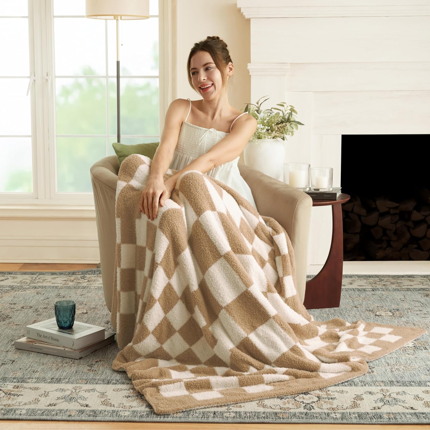 Joiedomi Throw Blanket for Couch Bed, Checkered Knitted Blankets Gifts for Women Mom Girls, Cozy Cute Soft Throw Home Room Decor Aesthetic for Women Mothers Birthday Gifts 50x70 Inches
