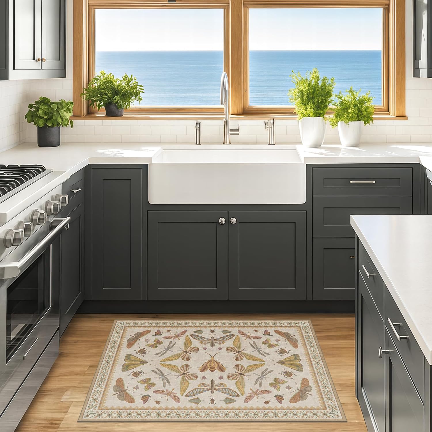- Whimsical Nature-Inspired Design: Celebrate the wonder of the natural world with this charming insect-themed washable area rug. A neutral beige background provides a soft canvas for an intricate array of butterflies, dragonflies, beetles, and mothsβarranged in playful symmetry. The muted tones of sage green, golden mustard, dusty blue, and blush rose lend a vintage botanical feel, while the hand-illustrated look evokes the feel of antique, cottagecore, eclectic entomology prints
