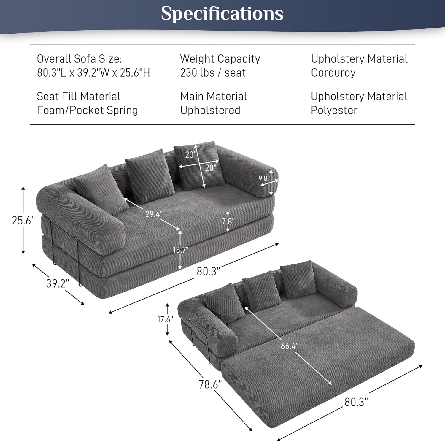- Corduroy Sleeper Sofa with Effortless Setup and Easy Use: Say goodbye to complicated assembly! This corduroy sofa bed is designed for immediate useβjust unfold and enjoy. Its tiered, multi-functional layout provides maximum versatility, transforming any living area into a stylish, cozy retreat with no hassle. Perfect for those seeking a functional, easy-to-set-up solution for their living space.