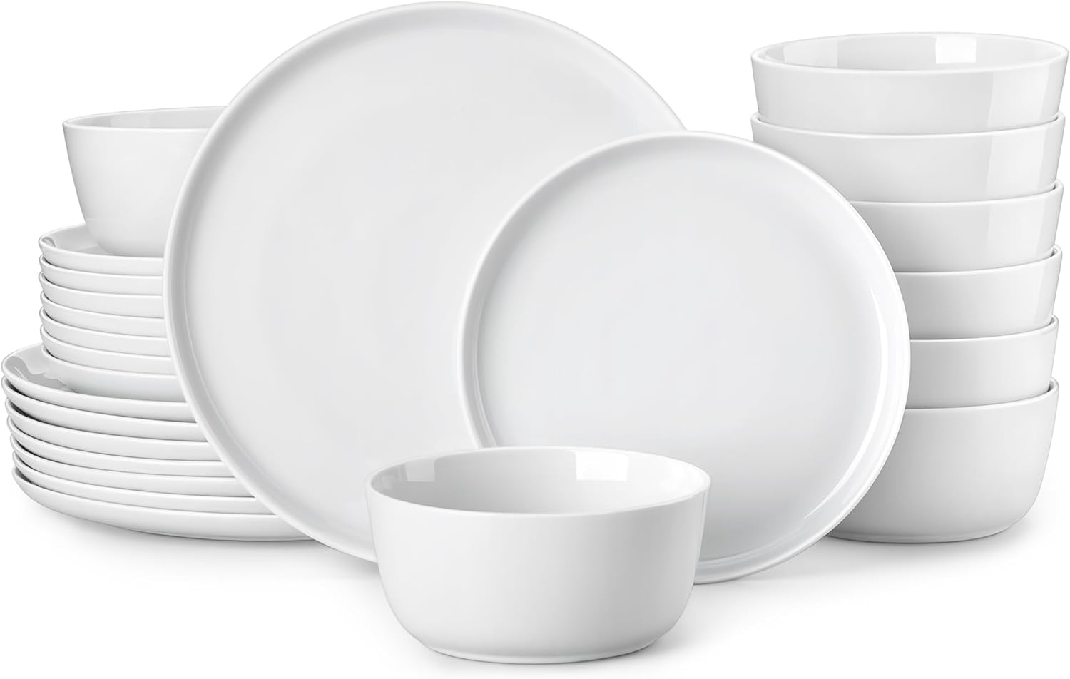 MALACASA 24 Pieces Gourmet Porcelain Dinnerware Sets, Premium Plates and Bowls Set, High-Fired Ceramic Dishes Set for 8, Chip & Scratch Resistant, Microwave Dishwasher Safe, White, Series LEXI