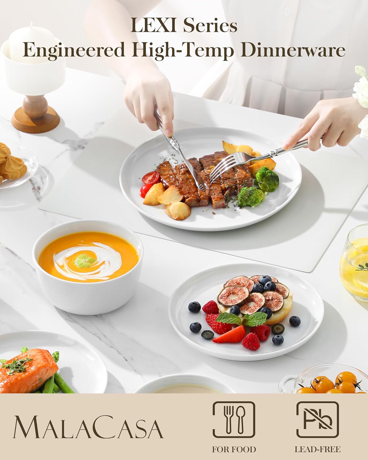 - 【ECO-FRIENDLY & HEALTH-CONSCIOUS】Crafted from premium natural kaolin clay and fired at ultra-high temperatures, LEXI dinnerware is 100% lead-free & cadmium-free. Designed to meet international safety standards including FDA requirements for food safety, offering peace of mind with every meal.