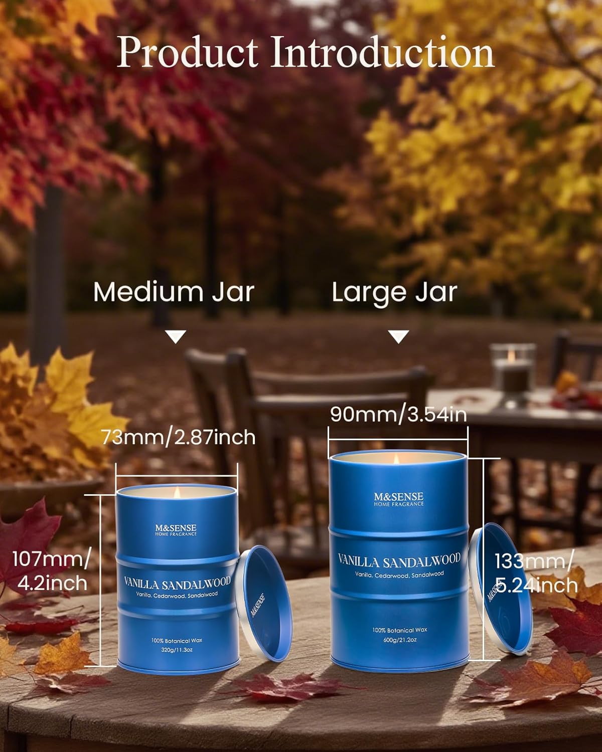 - 💚 Sustainable Material - M&SENSE candles are all crafted with the finest and most natural ingredients. Using high-end vegetable wax and unbleached cotton wicks in a reusable and recyclable tin. Packaged in recycled honeycomb paper and cardboard box for a more sustainable future.