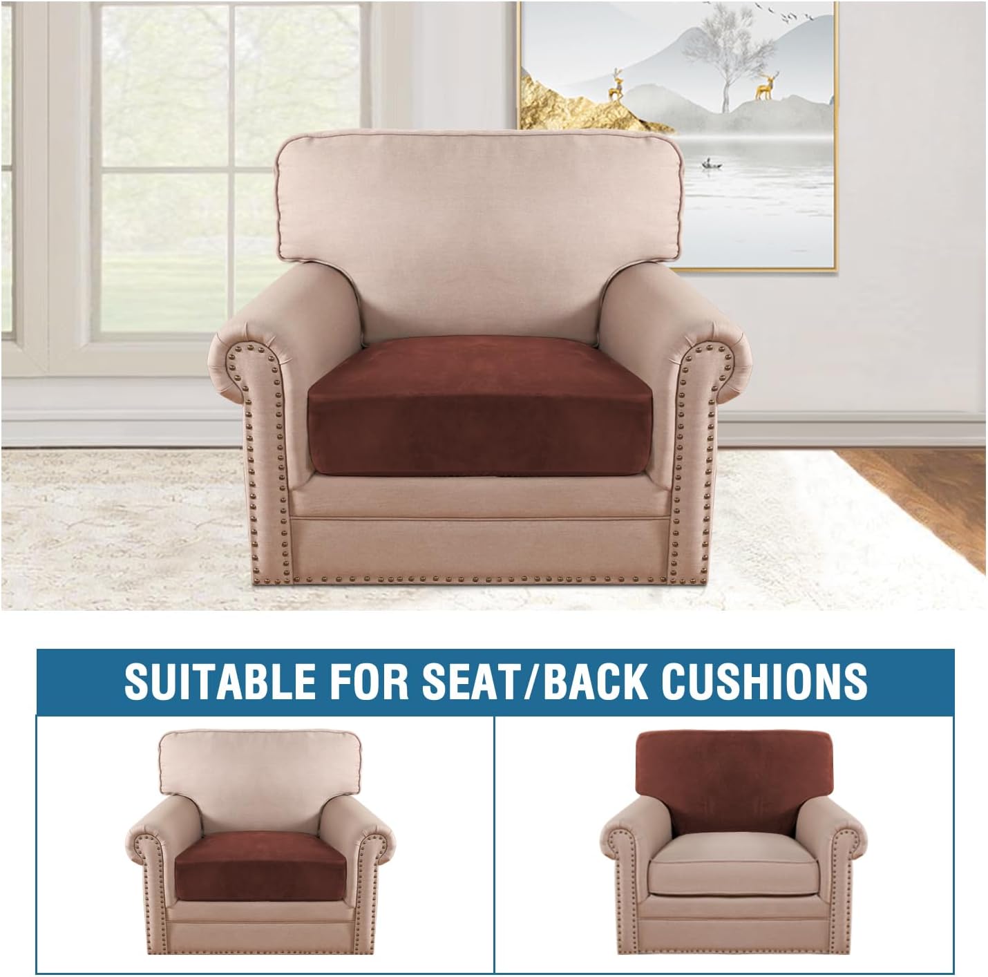 H.VERSAILTEX Velvet Stretch Couch Cushion Cover Plush Cushion Slipcover for Chair Cushion Furniture Protector Seat Cushion Sofa Cover (1 Piece Armchair Cushion Covers, Burnt Brick)