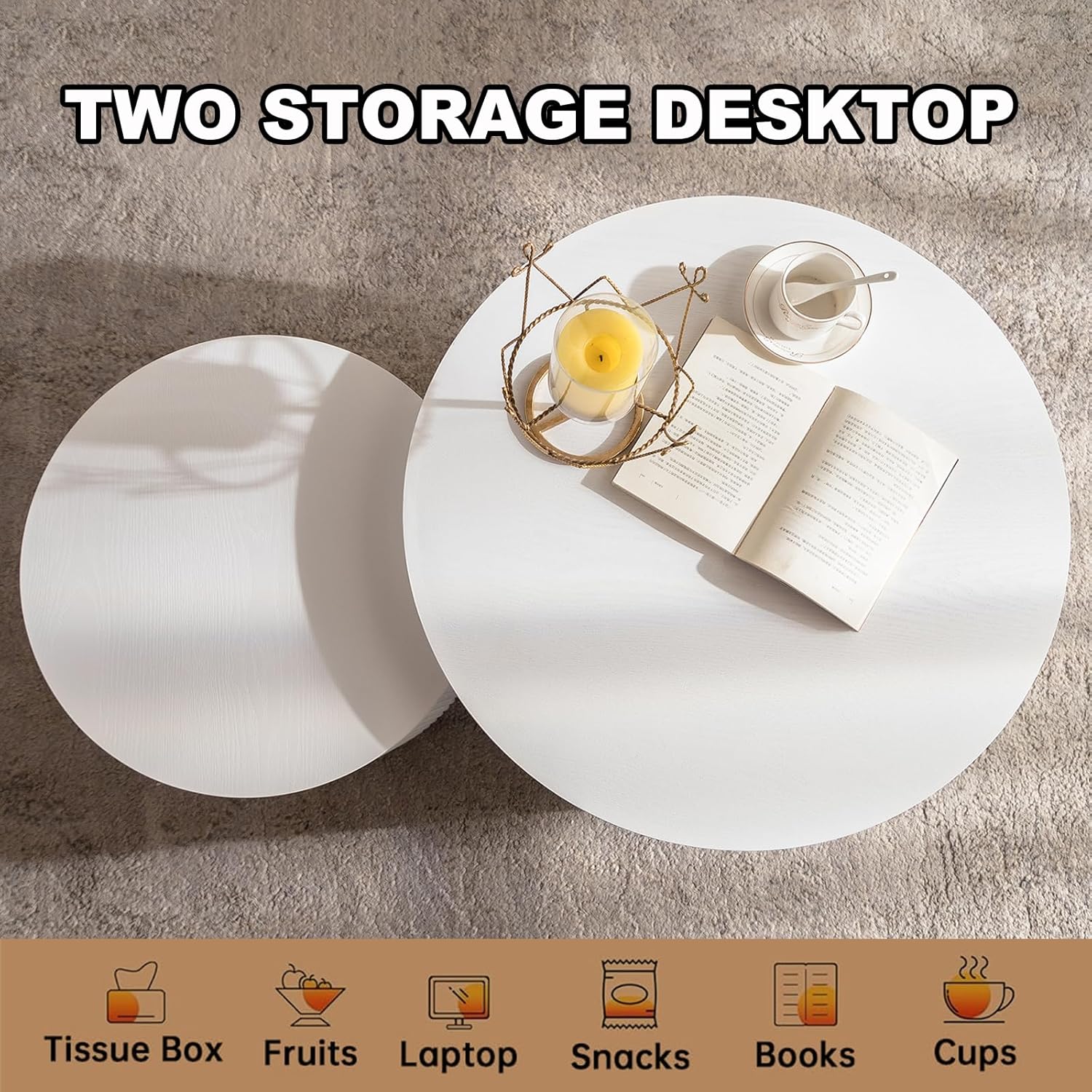 - Nesting Table Set of 2 - The circle coffee table and end table sets consists of one small round coffee table (Φ 27.56 x H 15.75 inch) and one side table living room (Φ 19.69 x H 13.78 inch), which can be arranged in multiple ways. One large and one small, with a sense of space and hierarchy