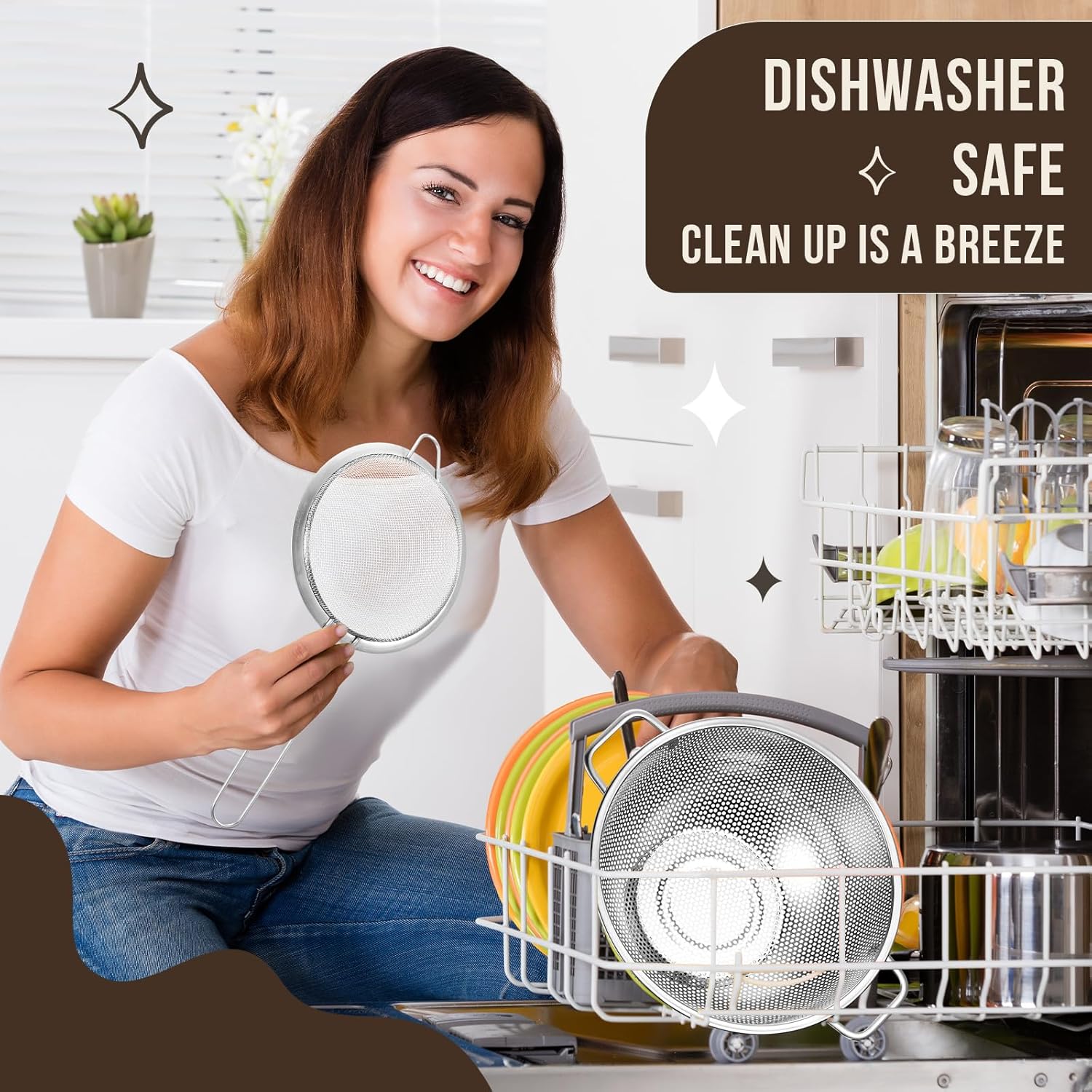 - Silver Kitchen Accessories: this package comes with 3 pieces of silver fine mesh strainers and 1 piece of 5 quart silver colander, this combination is nice to meet your daily usage and replacement needs, you can also share them with others