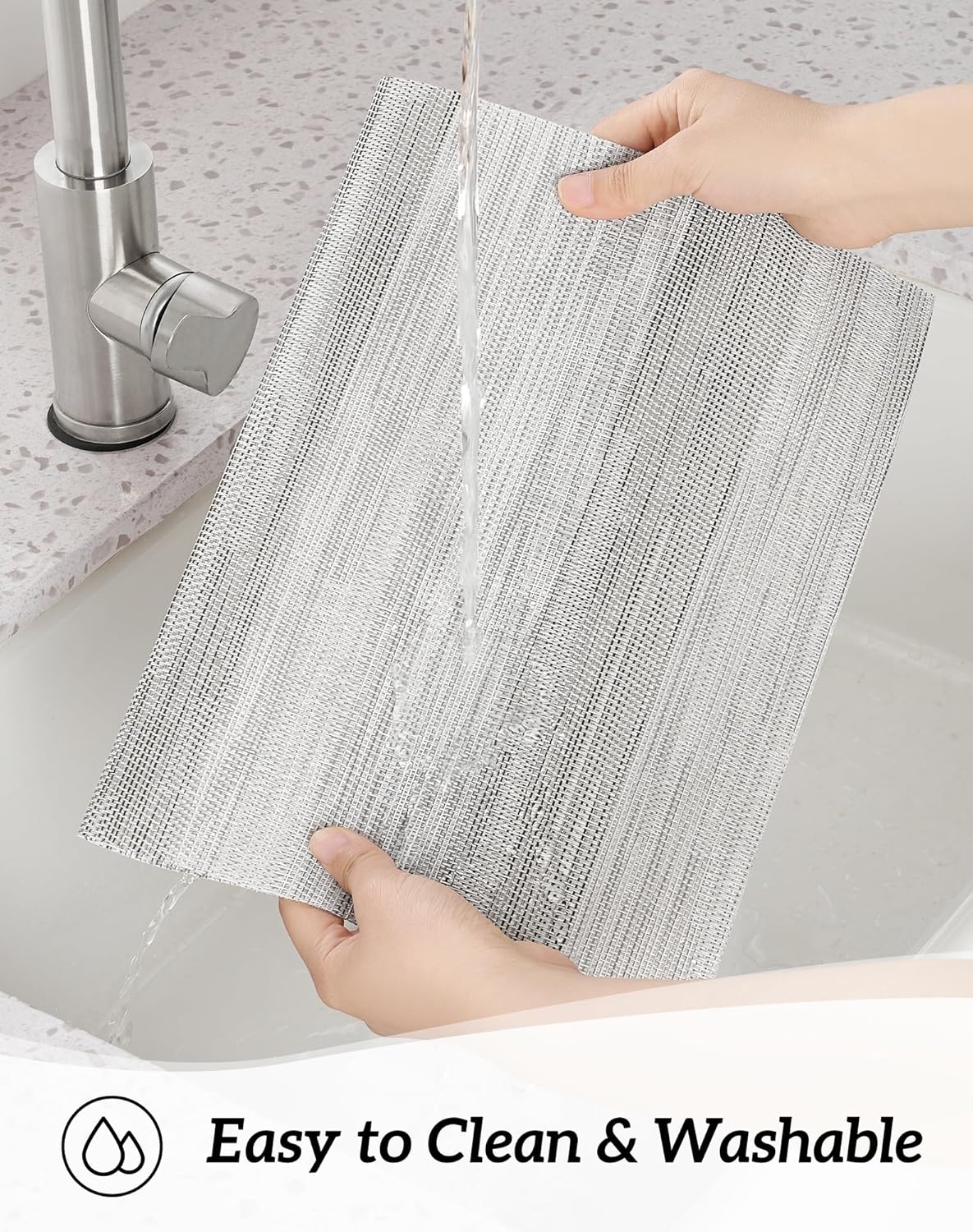 - Easy Maintenance and Storage: Our wipeable placemats are effortless to maintain. Simply use a clean sponge or dishcloth to wipe them clean, or gently wash with a soft brush. They are designed for easy storage and can be folded into any shape to fit your cabinets or drawers
