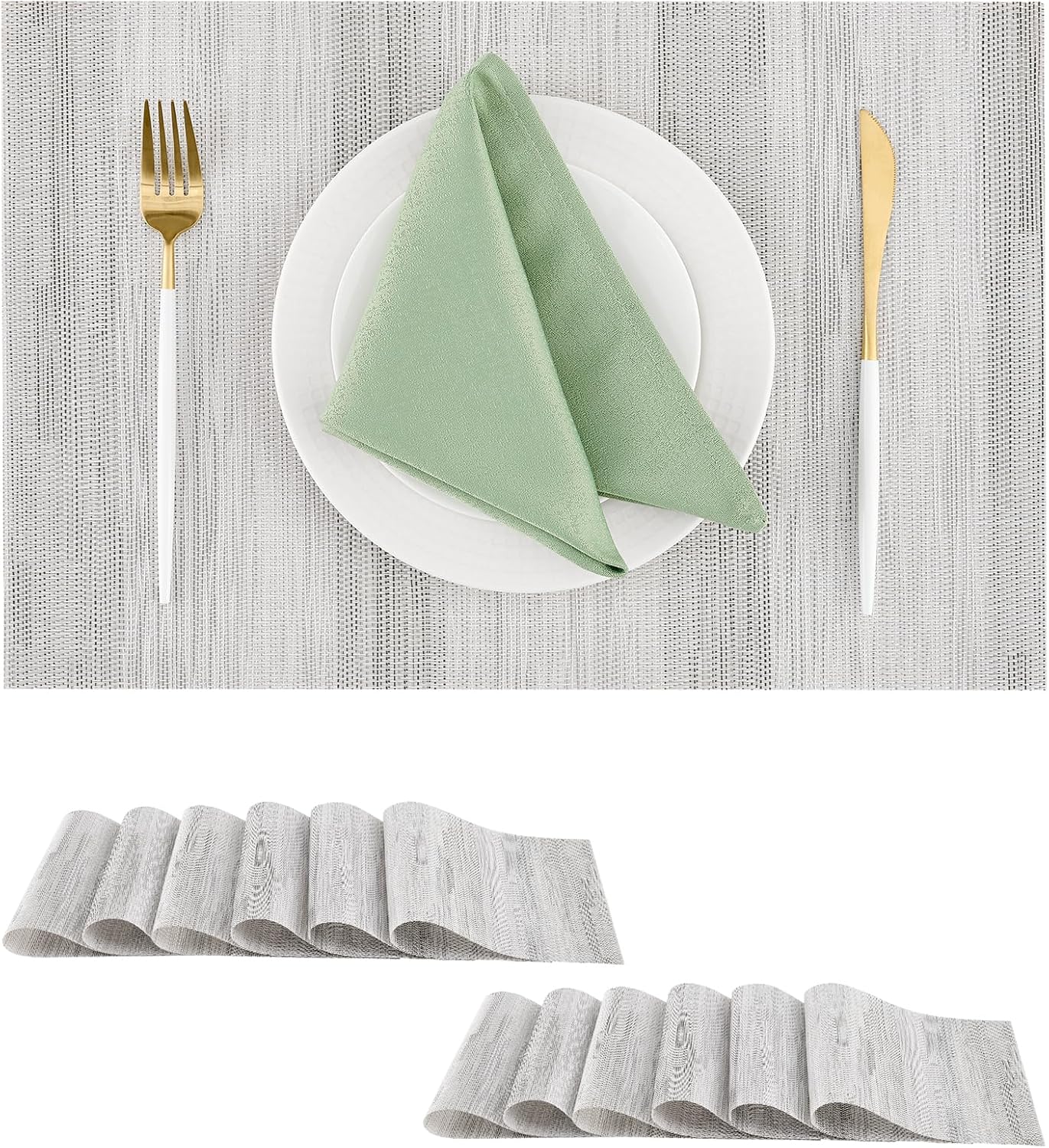 - Elegant and Practical Design: With a luxurious vinyl woven texture, precision cutting, and heat-trimmed edges, our double-sided placemats offer a sophisticated and practical solution. They provide a non-slip surface, resist fading, and are easy to clean, elevating your dining experience