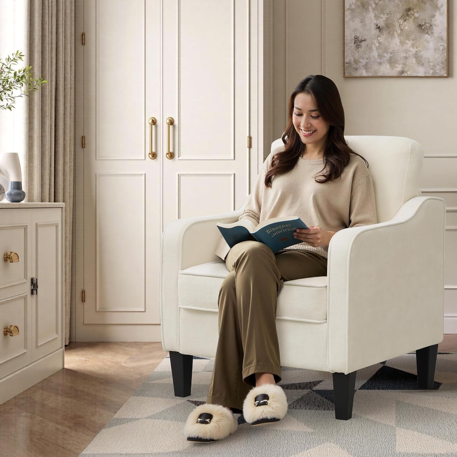 - 【Comfortable Seating】The 5.7" thick seat of this living room chair are padded with high-density foam for superior comfort. The armchair with 115° seating angle offers enhanced support, reduces lumbar fatigue and ensures a comfortable seating experience. The armrests are perfectly aligned with your arms, providing your hands with plenty of support for long hours of reading, resting or relaxing.