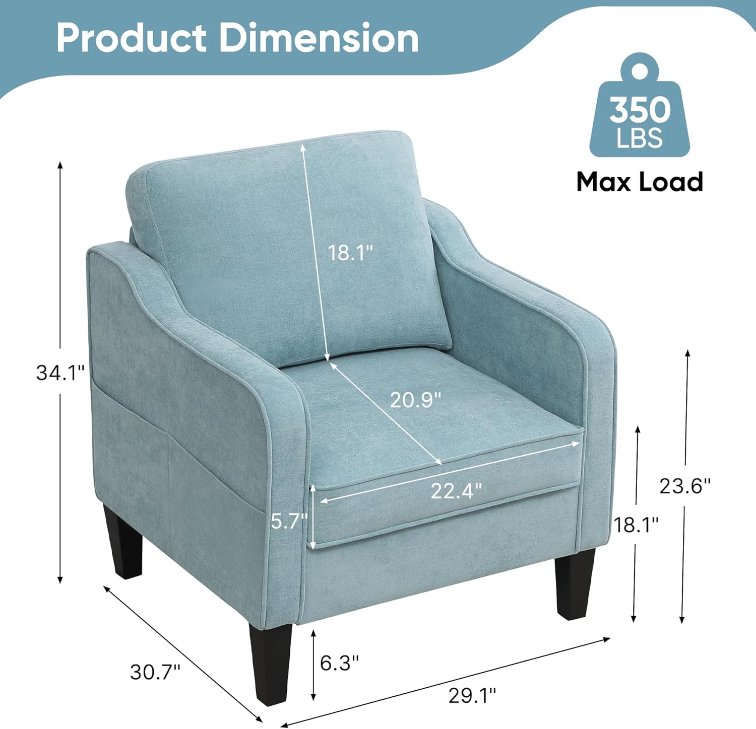 - 【Comfortable Seating】The 5.7" thick seat of this living room chair are padded with high-density foam for superior comfort. The armchair with 115° seating angle offers enhanced support, reduces lumbar fatigue and ensures a comfortable seating experience. The armrests are perfectly aligned with your arms, providing your hands with plenty of support for long hours of reading, resting or relaxing.