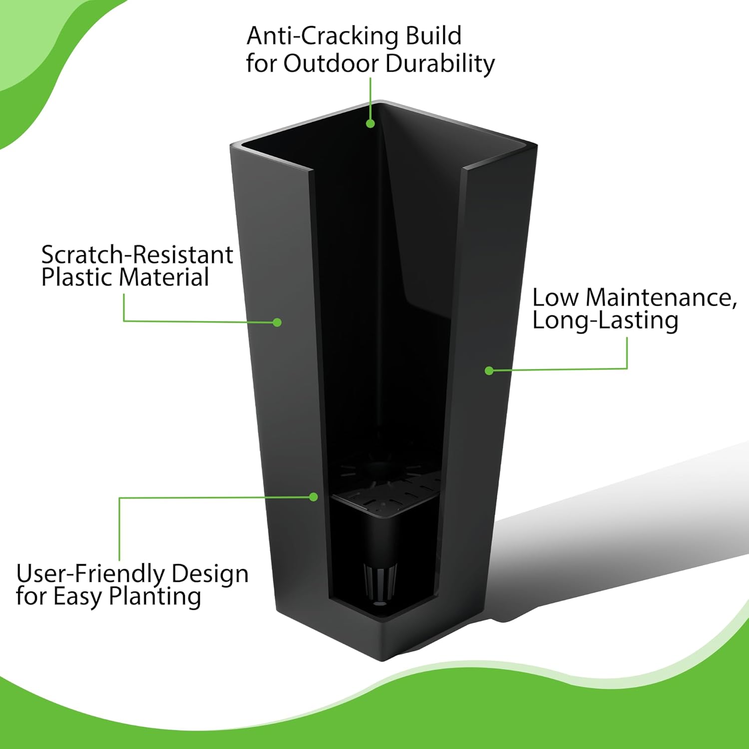 - Built to Endure All Weather Conditions: Crafted from premium, weather-resistant plastic, these tall planters for outdoor plants are designed to resist cracking, fading, and damage from the sun, rain, and snow. Perfect for any season, these large planters for outdoor plants ensure long-lasting durability, making them an excellent choice for outdoor and indoor gardening alike.