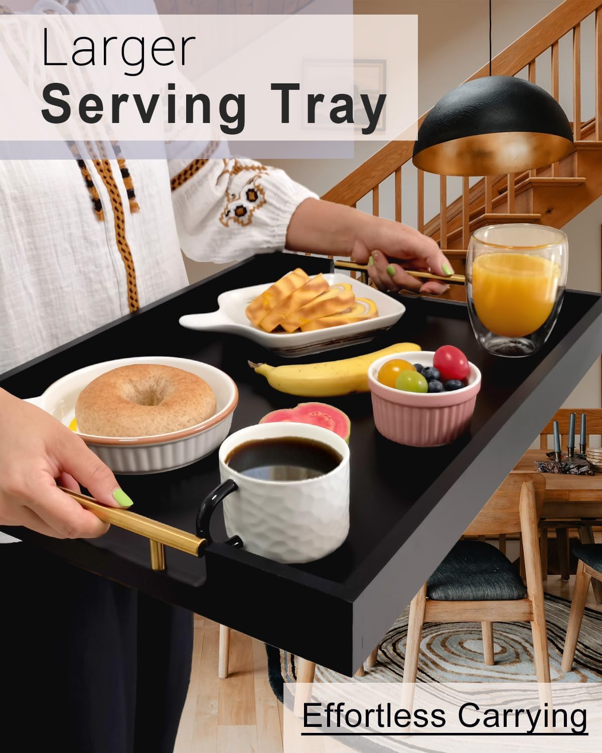 - DURABLE METAL HANDLES – Equipped with golden metal handles that offer a comfortable grip, making it easy to carry—ideal for serving dishes up and down stairs.