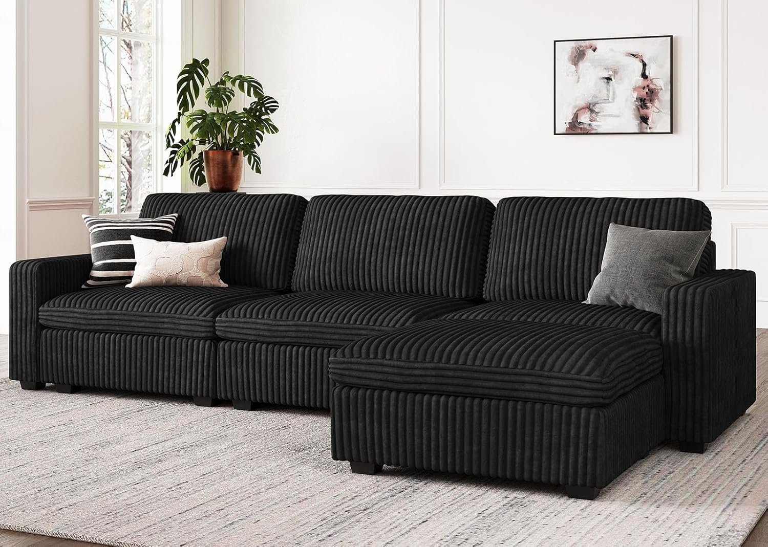 - Luxurious Corduroy: Upholstered in plush wide-rib corduroy, Belffin modular cloud sectional sofa is soft, skin-friendly, and stylish. As one of today’s trendiest materials, plush corduroy adds cozy texture and softness—while being easy to maintain and pet-friendly.