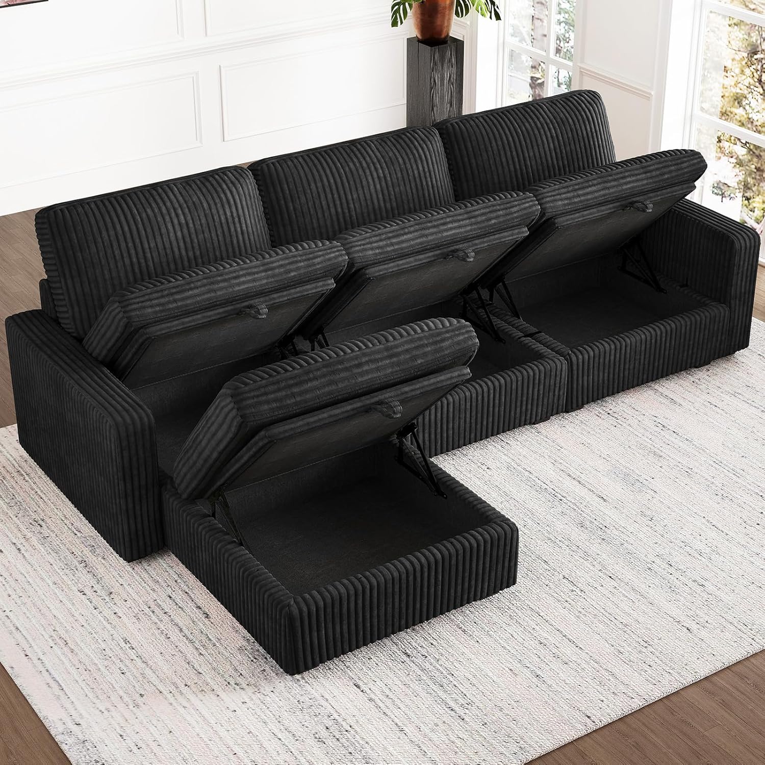 Belffin Modular Sectional Sofa with Storage Ottoman, Oversized Cloud Couch Sectional with Extra Deep Seat, Convertible L Shaped 4 Seater Sectional Couches for Living Room, Plush Corduroy Black