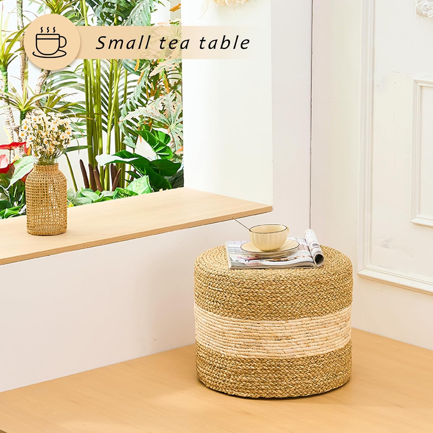 - 【Natural Water Hyacinth】Crafted from natural water hyacinth, LGENHOOM pouf brings a warm, organic look and feel to any space.