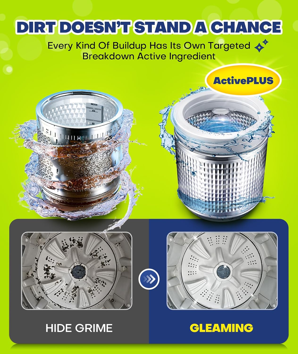 - LONGER WASHER LIFE, STARTS WITH A SAFE CHOICE - Don’t let residue buildup ruin your washer! Use our laundry machine cleaner monthly to clean inner parts like the drum, valves, and hose pipes deeply and thoroughly — extends your washer’s life, restores optimal performance, andand saves you costly manual cleaning fees! Unlike others that may harm your washer, our washing machine cleaning tablets is safer, eco-friendly, and septic tank-safe!