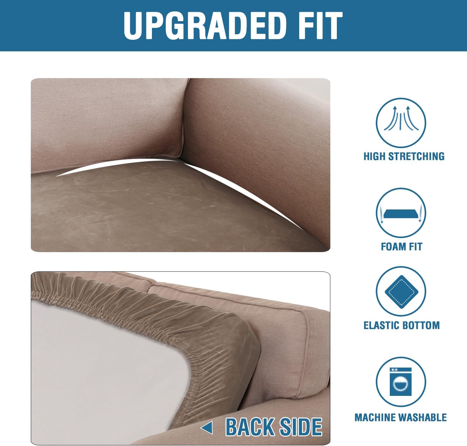H.VERSAILTEX Velvet Stretch Individual Couch Cushion Cover Plush Cushion Slipcover for Loveseat Sofa Cushion Furniture Protector Seat Cushion Sofa Cover (1 Piece Sofa Cushion Cover, Mocha)