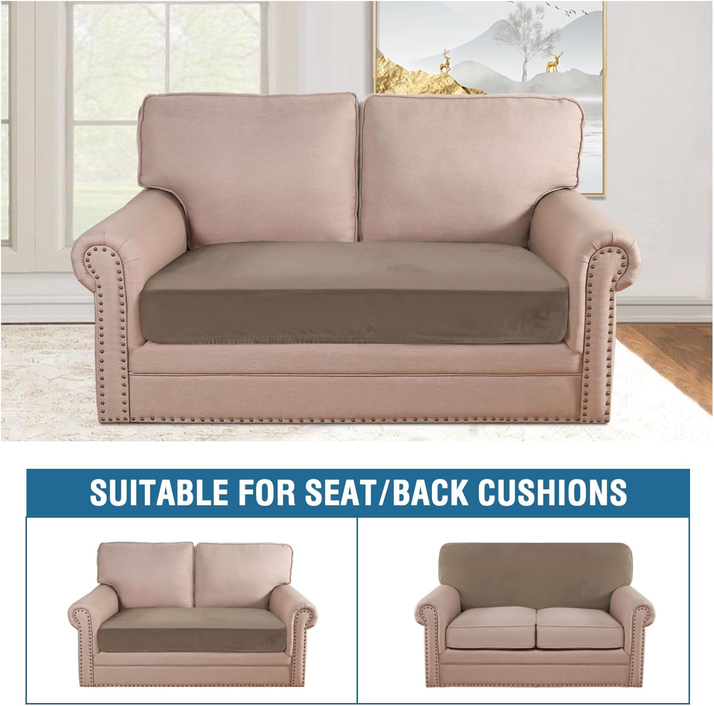 H.VERSAILTEX Velvet Stretch Individual Cushion Cover Plush Cushion Slipcover for Loveseat Sofa Furniture Protector Seat Cushion Sofa Cover (1 Piece Loveseat Cushion Cover, Mocha)