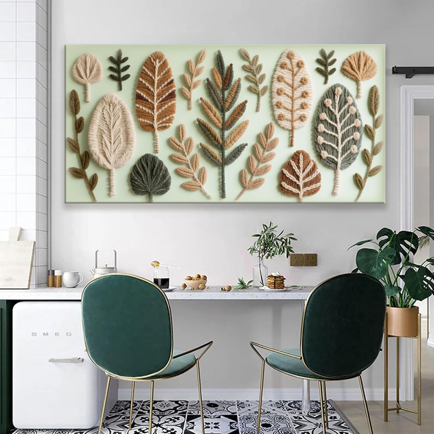 Large Boho Wall Art For Living Room Chic Home Green Wall Art Modern Multicolor Print Paintings Leaves Feather Canvas Wall Art Decor Picture For Bedroom Apartment Kitchen Ready To Hang 29"W X 58"L