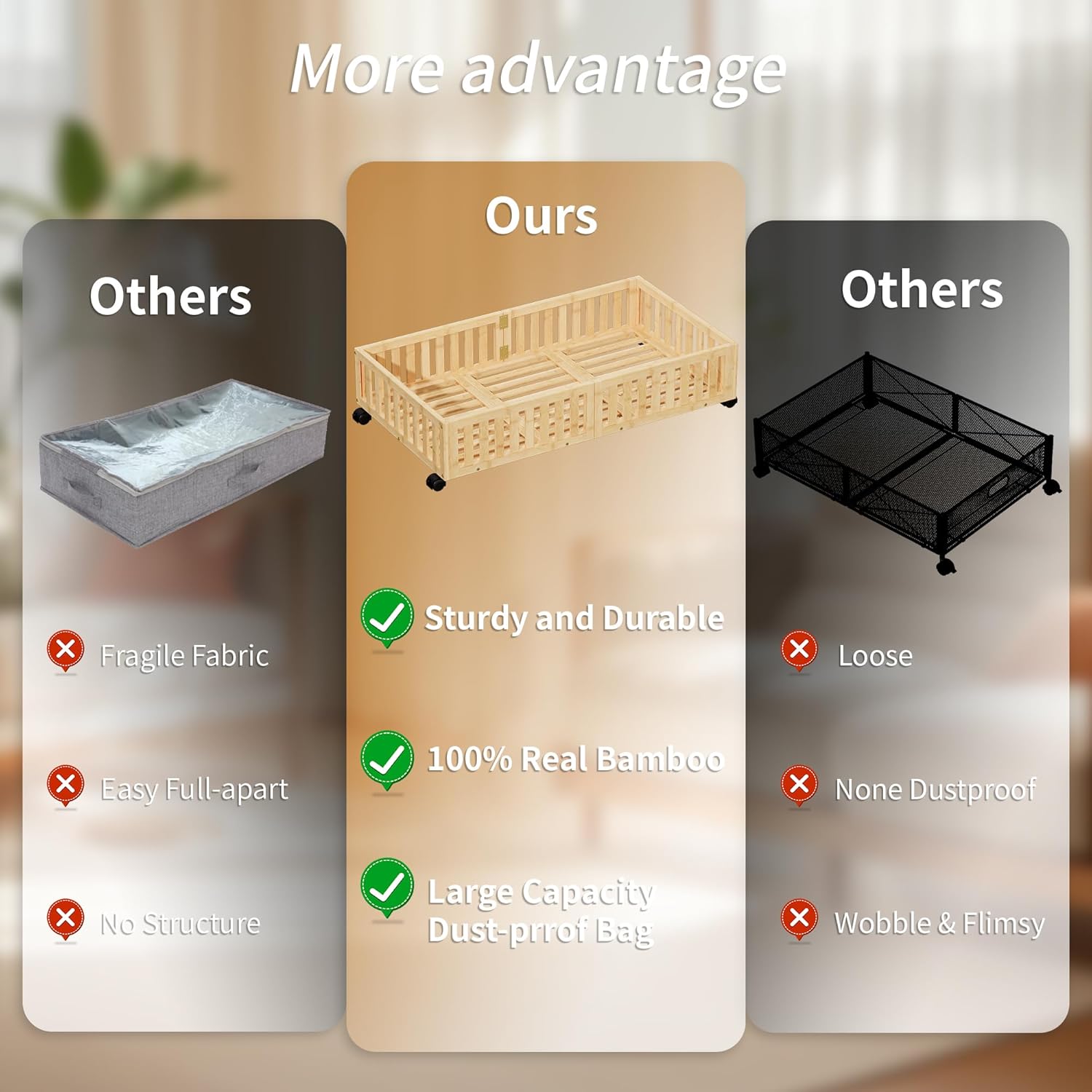 - Easy Assembly & Fit Most Beds: Simple assembly required, and the compact design fits under most standard beds. Transform the wasted space under your bed into a functional storage area with these bamboo under bed storage units.