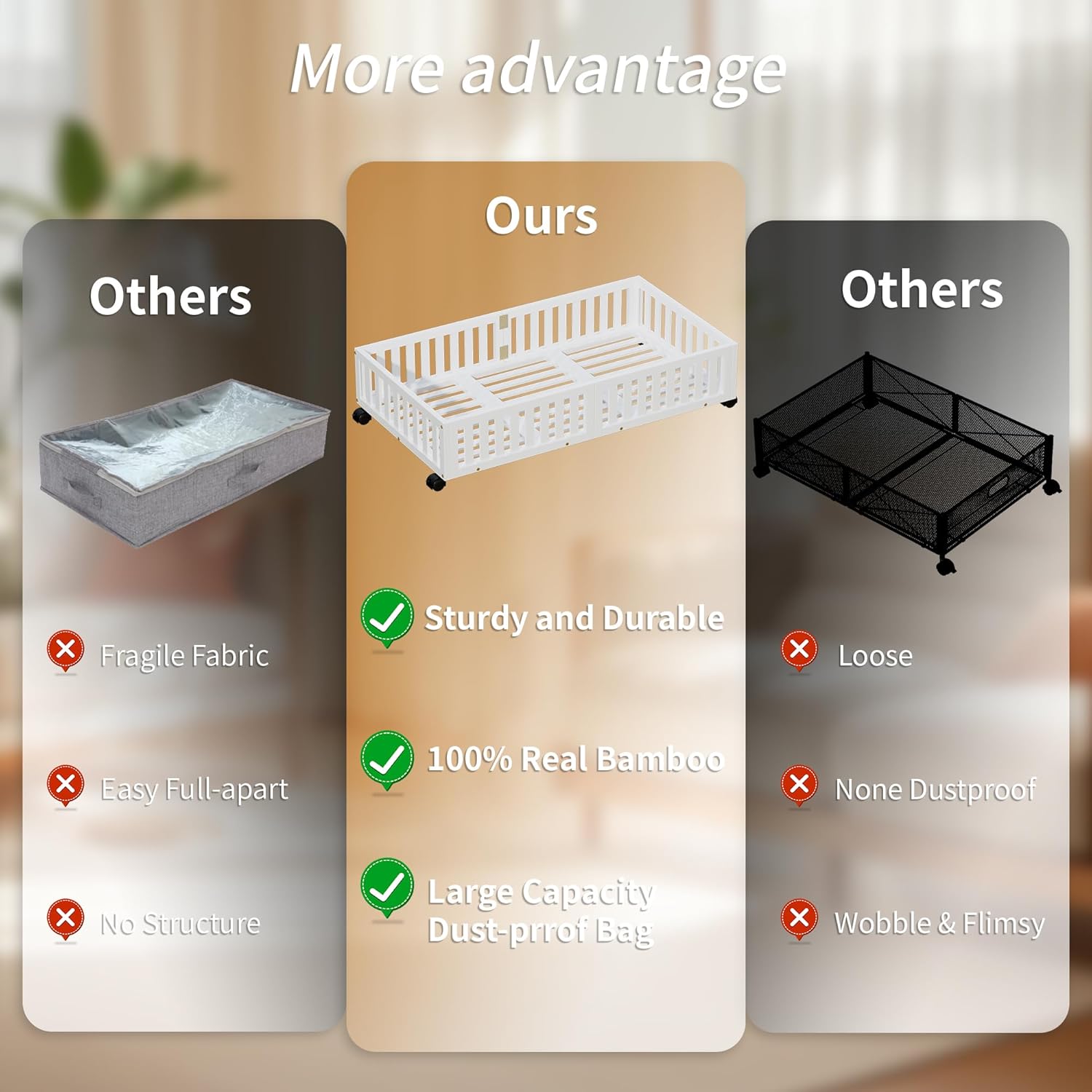 • Easy Assembly & Fit Most Beds: Simple assembly required, and the compact design fits under most standard beds. Transform the wasted space under your bed into a functional storage area with these bamboo under bed storage units.