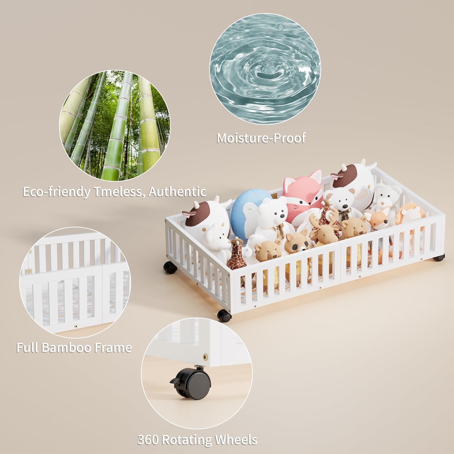 • Ventilated Design: The slatted bamboo design promotes air circulation, preventing musty odors and keeping your stored items fresh. A smart choice for under the bed storage with wheels to maintain item quality.