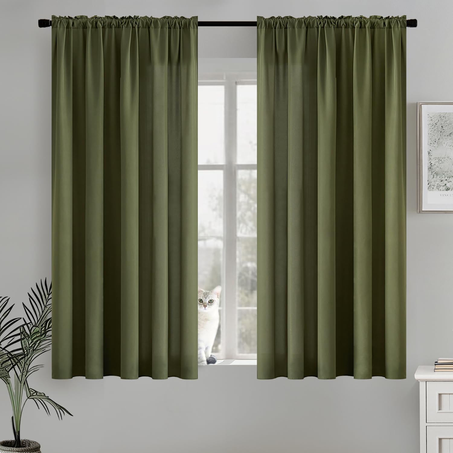MIULEE Olive Green Privacy Sheer Curtains That Let Light in 63 Inches Long Non-See-Through Semi Sheer Curtain Light Filtering Window Curtains Drapes for Living Room Bedroom 2 Panels Set 42 X 63
