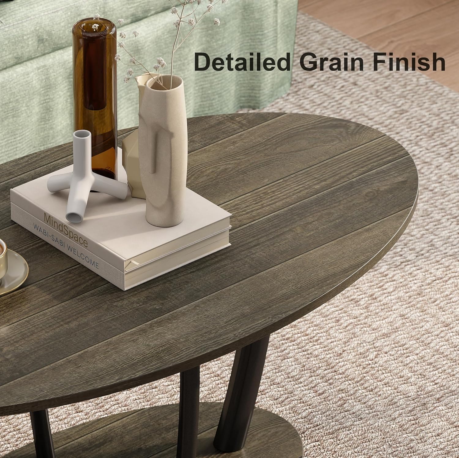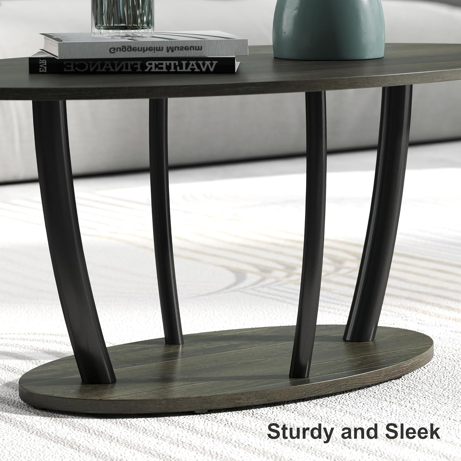 Manora Small Oval Coffee Table with Storage, Rustic Farmhouse Industrial Center Table for Living Room, VintageTea Table for Small Spaces, Gray