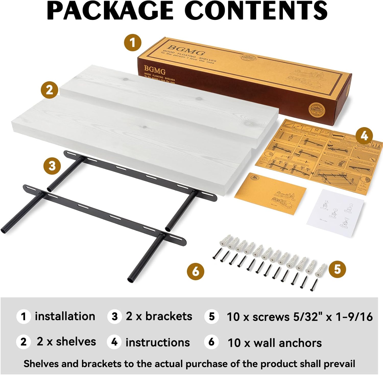 - EASY TO INSTALL: These floating shelves come with stainless steel galvanized invisible brackets, toggle bolts for drywall, and simple instructions to help you install them. These wall shelves are easy to assemble, requiring only two boards and the necessary screws and hardware. We also provide detailed instructions for quick and easy assembly