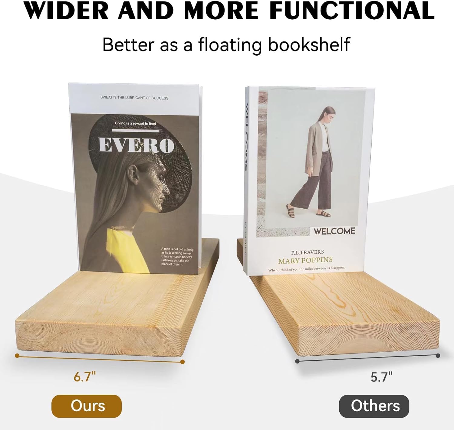 - MODERN RUSTIC LOOK - The floating shelves are made of 100% natural pine, and the wood has different nodes and grains, so the color of each shelf may be slightly different, but equally stunning