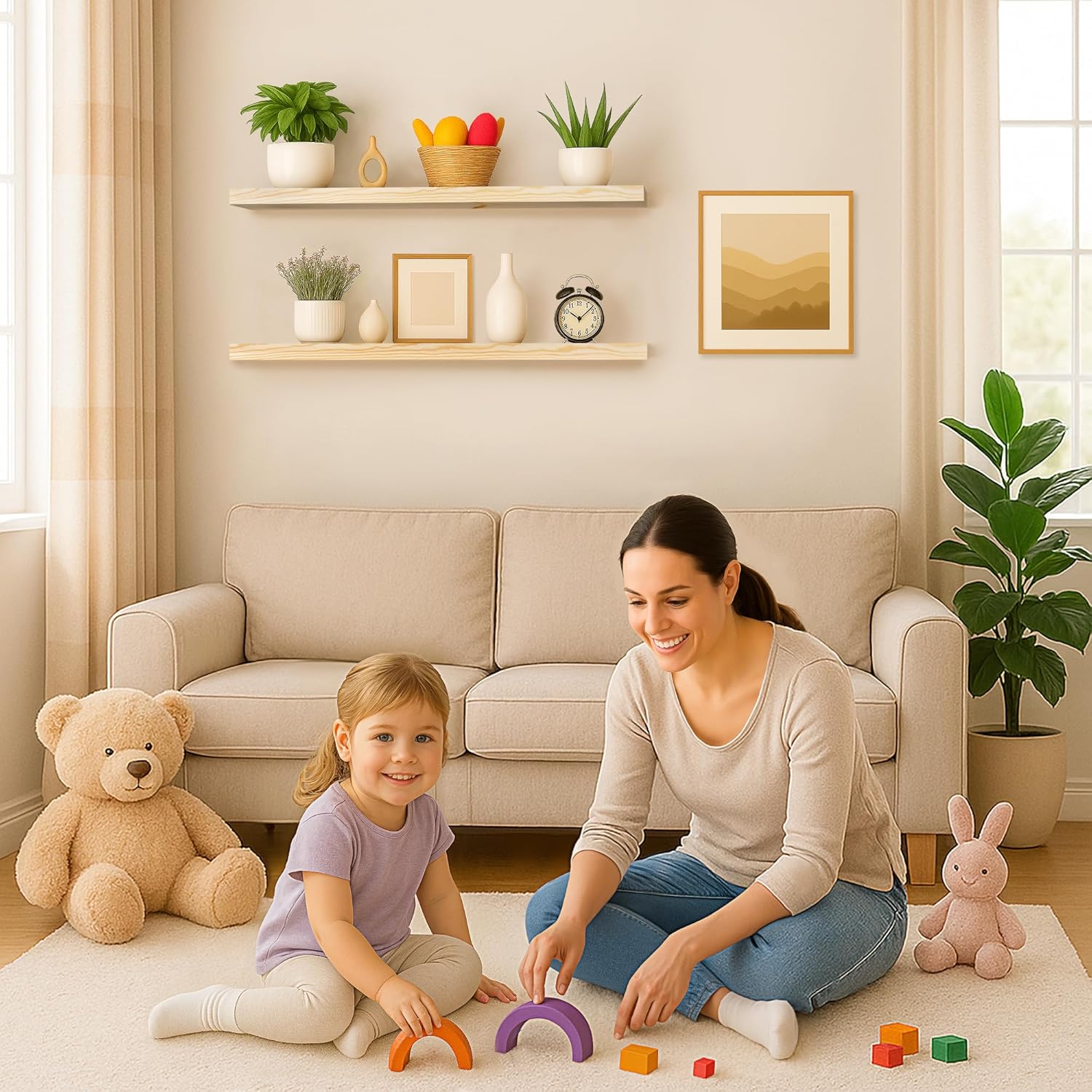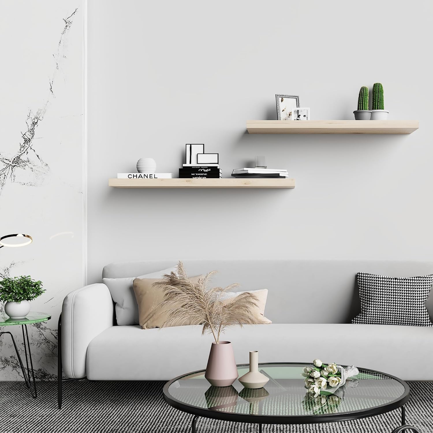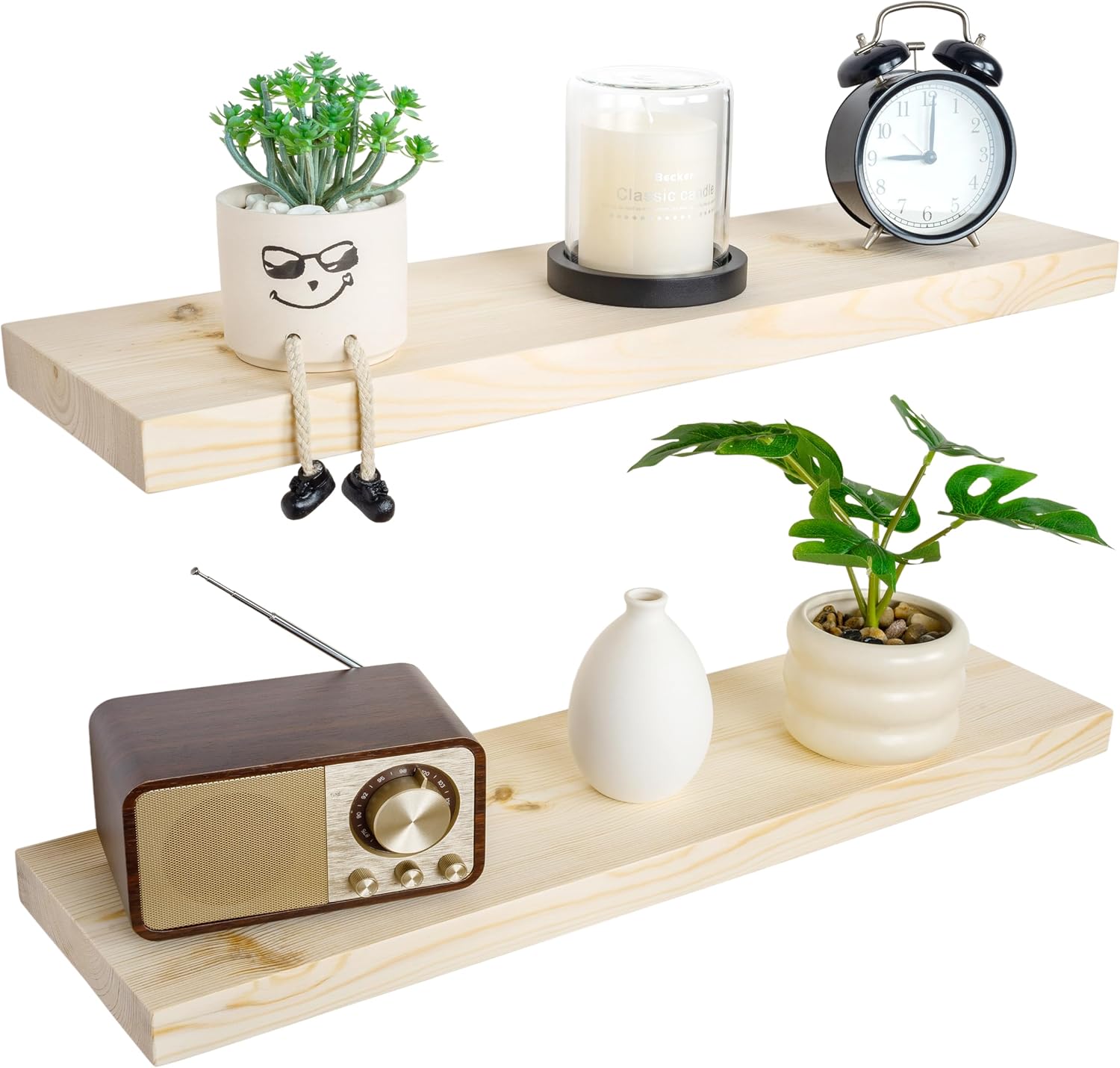 - MODERN RUSTIC LOOK - The floating shelves are made of natural pine, and the wood has different nodes and grains, so the color of each shelf may be slightly different, but equally stunning
