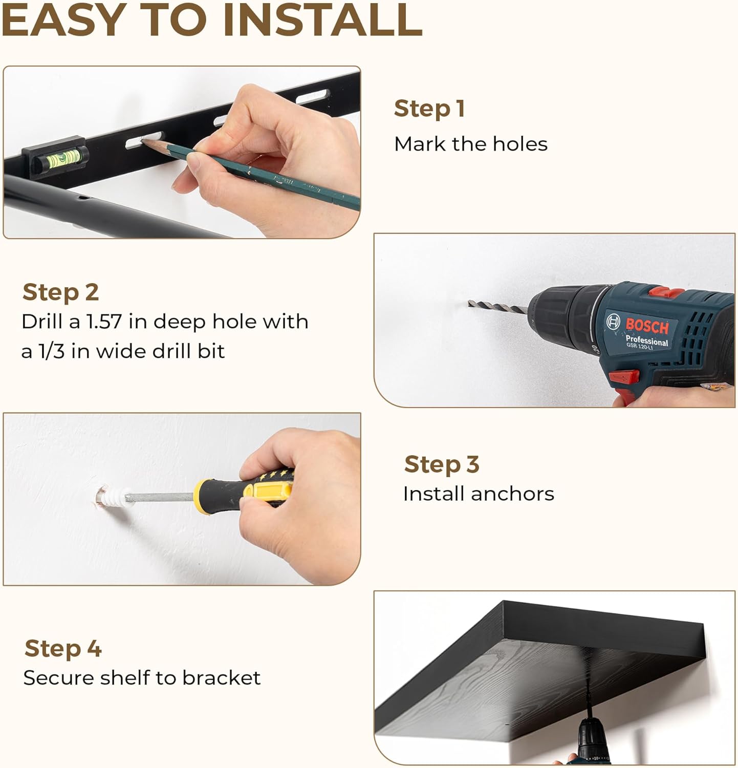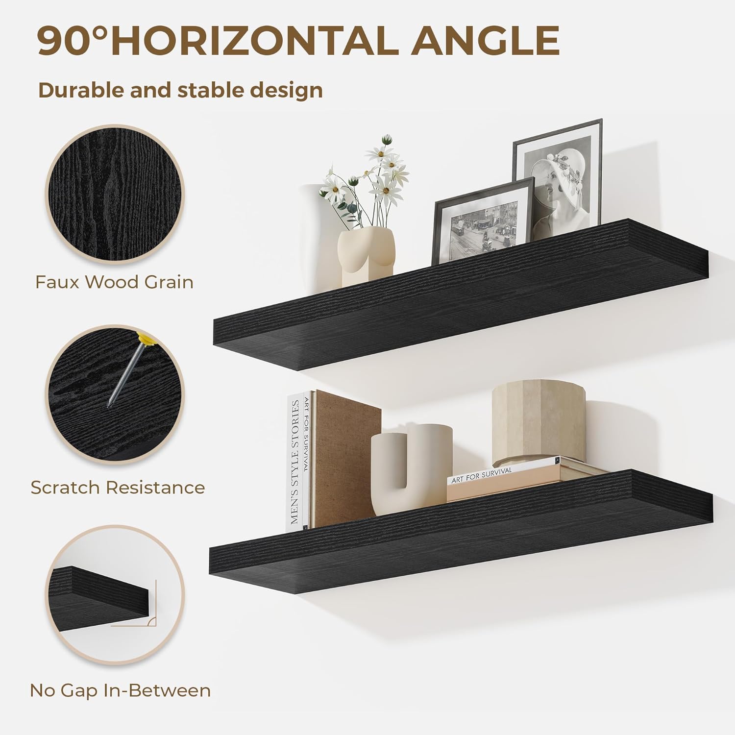 - Sturdy & Secure design: These 32-inch floating shelves feature a durable, concealed mounting bracket that offers reliable support for your belongings. Engineered for hassle-free and stable installation, each shelf includes all the required hardware to ensure a strong, wobble-free hold—perfect for showcasing your favorite decor, photos, or everyday items with confidence and style.