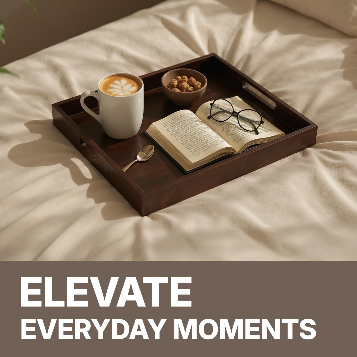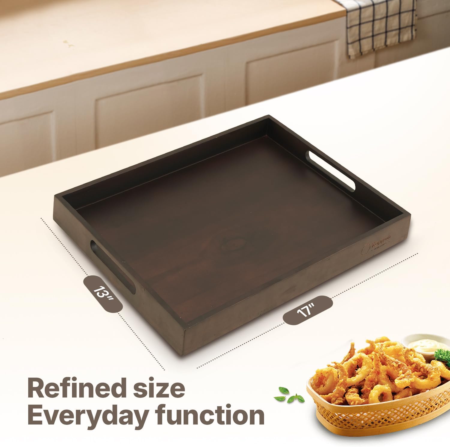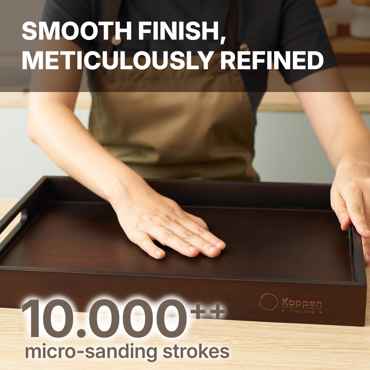 - [METICULOUSLY REFINED]: Our wooden serving tray is hand-finished through over 10,000 micro-sanding strokesโleaving the surface irresistibly soft, almost mental-like to the touch. Perfect as a wooden decorative tray, rectangle tray, or coffee tray for tray decor, it elevates food trays for eating, bed food trays for adults, serving platters and trays for parties, or party serving trays and platters.