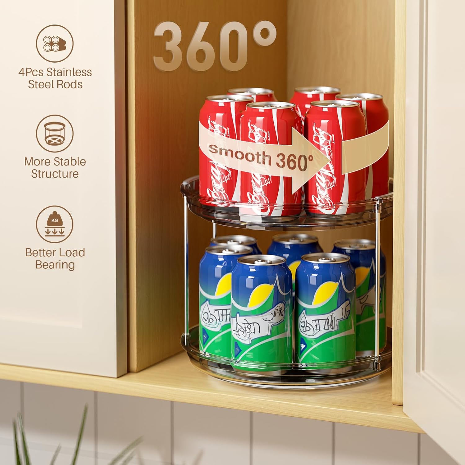 - VERSATILE STACKABLE DESIGN: Customize your space by stacking these units into a 3-tier Lazy Susan organizer when you buy 2 Sets — well-suited for kitchen cabinet organizer spices or seasoning, cans, beverages, medicine, bathroom counter organizer makeup, perfume, and more