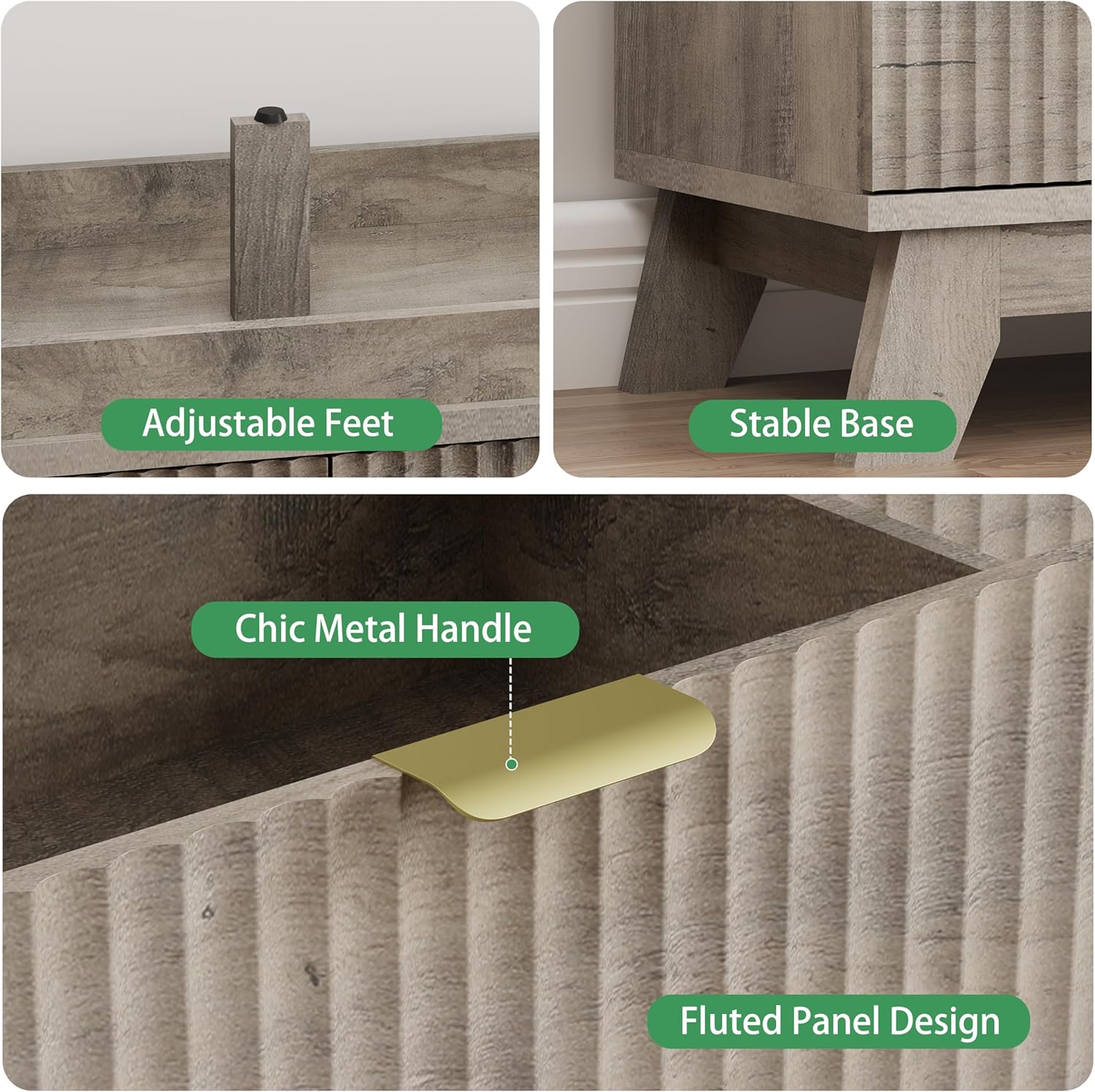 - γModern Chic AppearanceγThe unique wave-like fluted panel enhances the texture and elegance of this bedroom dresser. The thick table top features natural wood grain that complements the black finish. The wide metal handle and splayed base legs add a modern touch, creating a personalized and distinctive appearance
