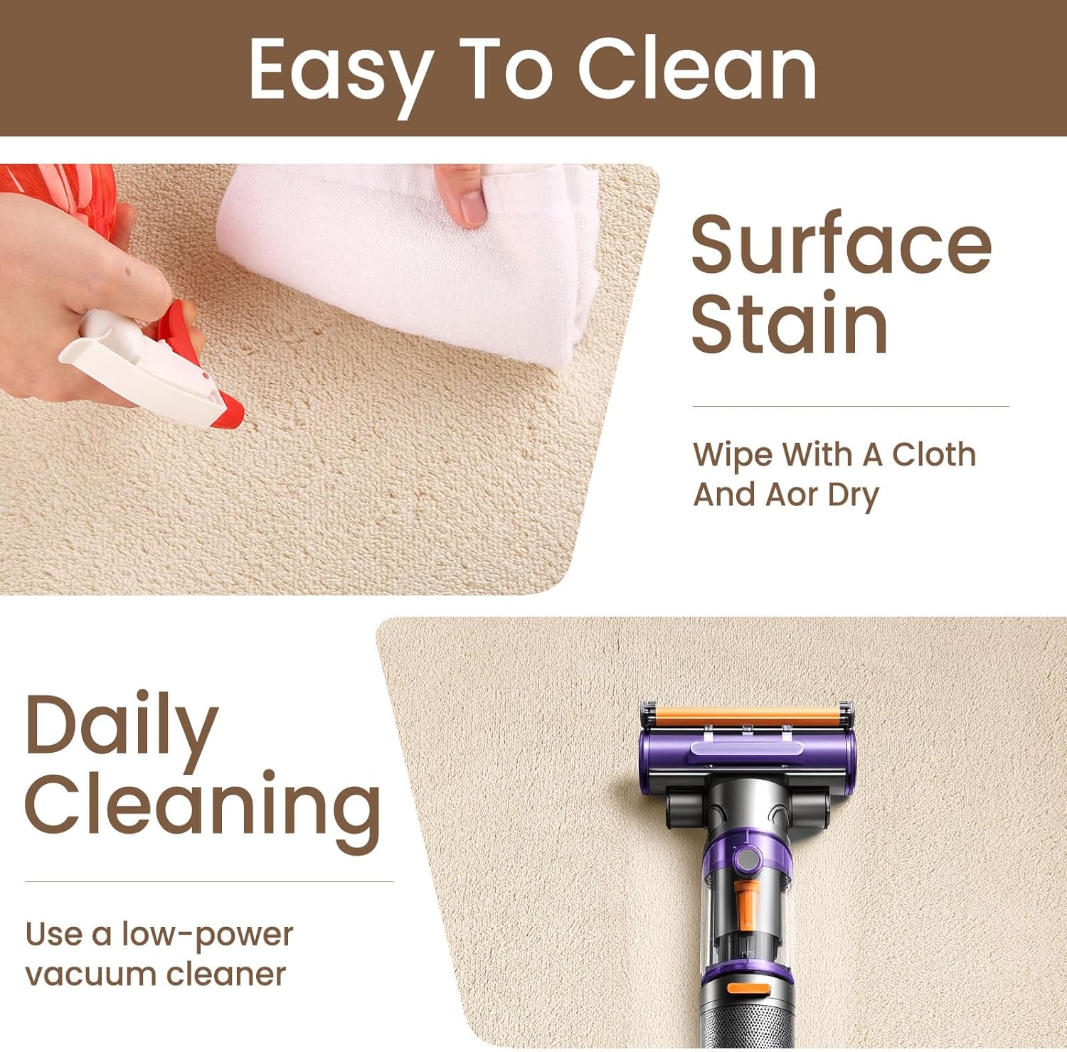 - 【EASY CLEANING 】- Machine Washable Area Rugs, simply vacuum with a hand-held vacuum in daily. If you want to do deeper clean, you can add some mild detergent and gently wash the Shaggy Velvet Area Rugs by hands. Then choose a site that's well ventilated, lay rug out or hang to dry naturally. Please do not expose it in the sun.