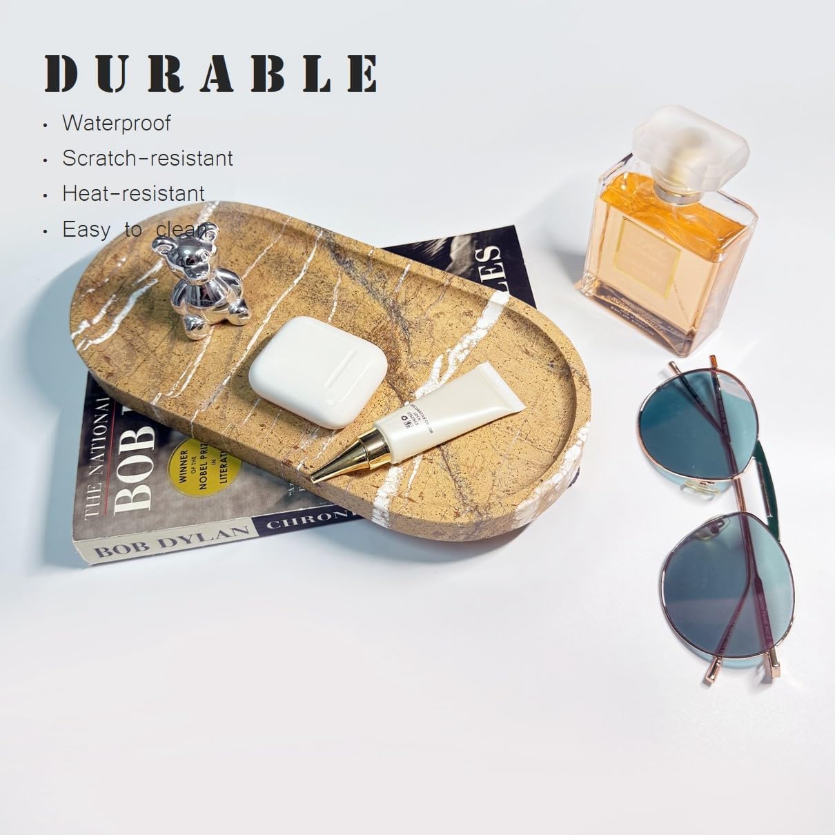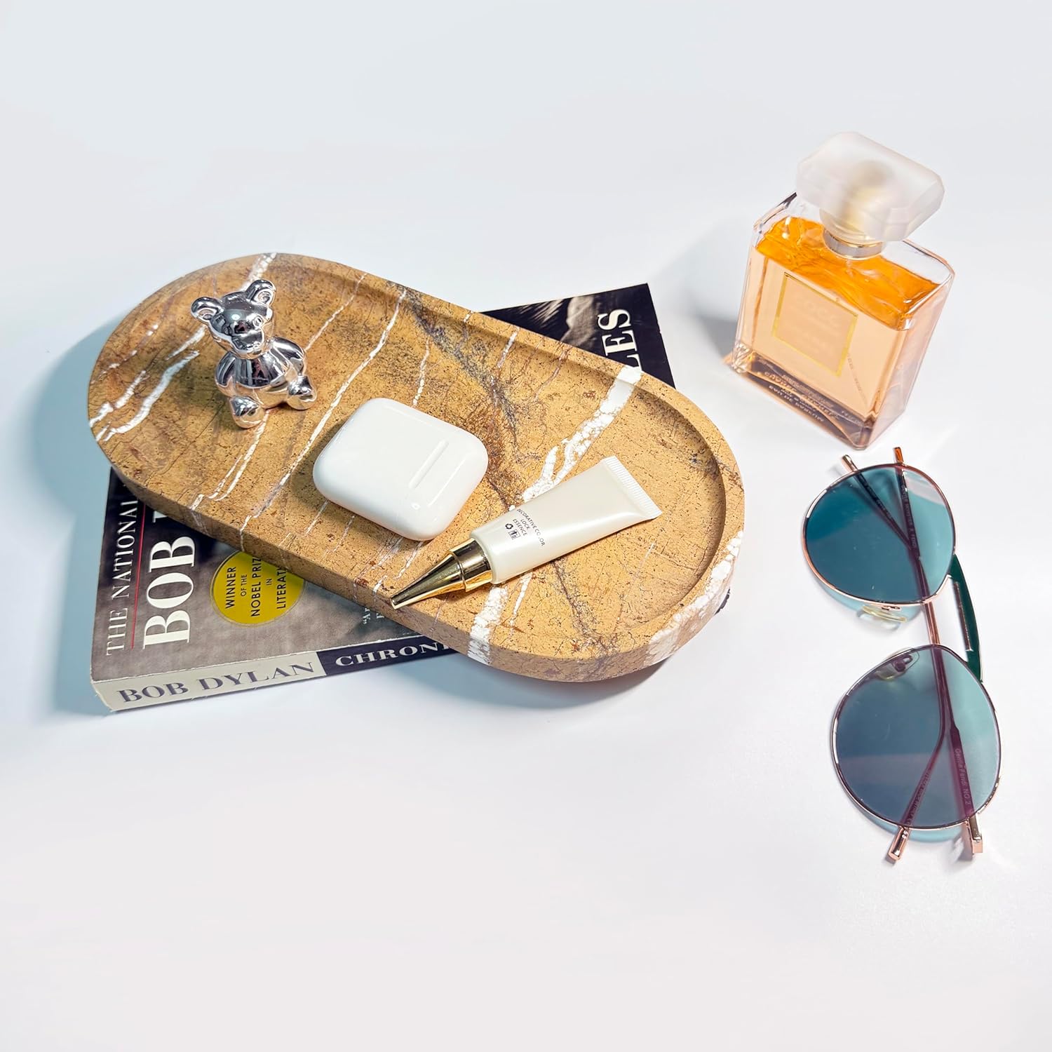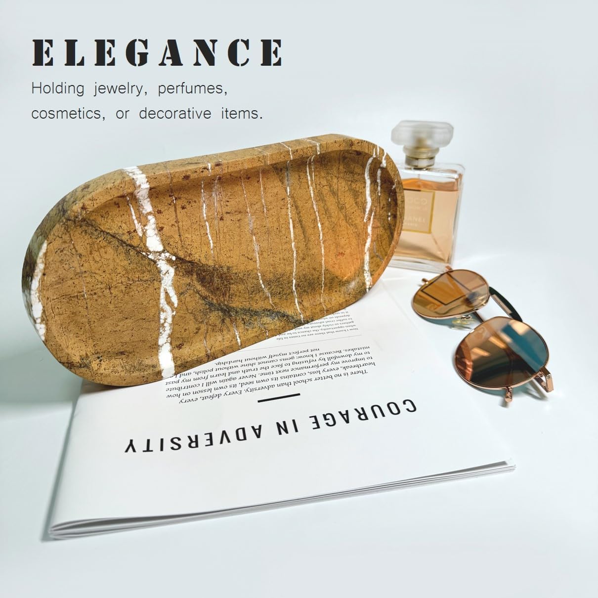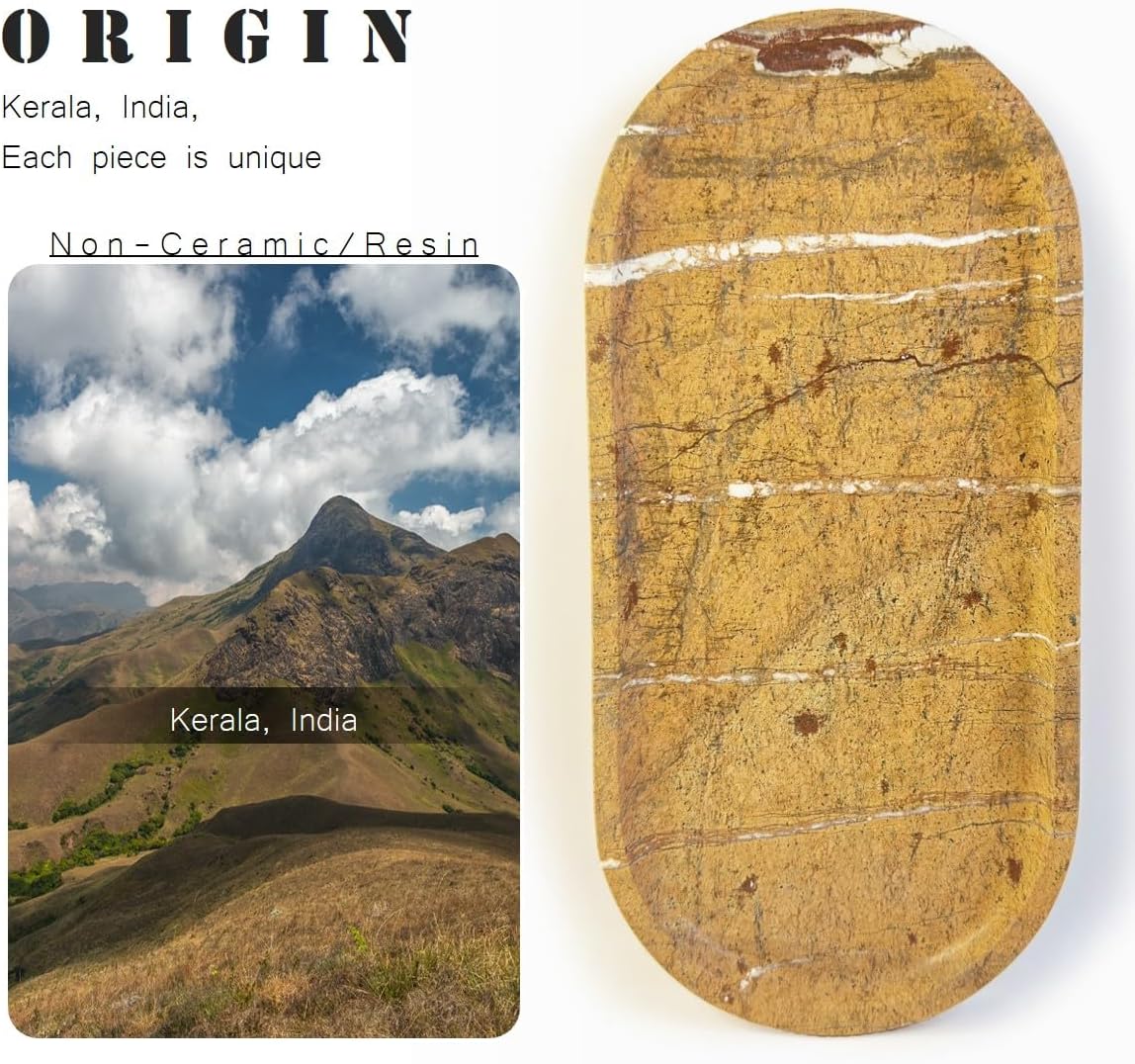 - MULTI-PURPOSE SIZE 10X5 INCHES: This vanity tray fits perfectly in any room. Use it as a bathroom tray for toiletries, a perfume display stone tray, a coffee table stone tray for dรฉcor, a nightstand stone catchall tray for keys and remotes, or an entryway catchall tray to keep essentials organized