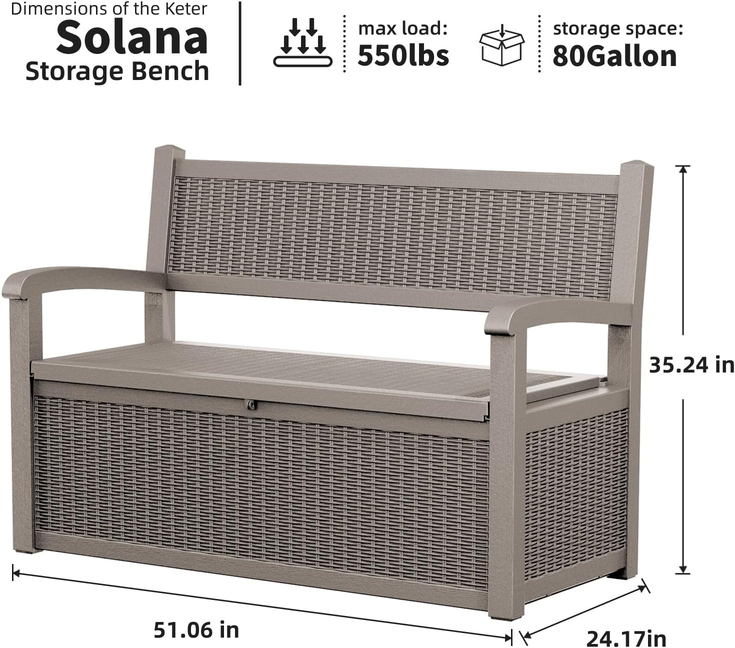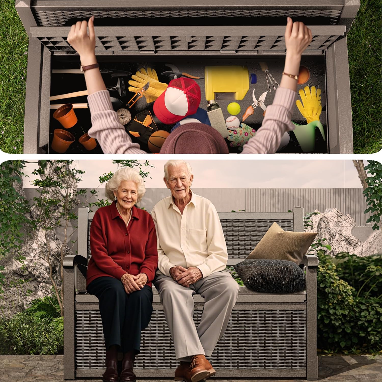 - 【Resin Construction】: This storage bench deck box is made of high-quality resin, which is extremely sturdy and durable, and can withstand all kinds of weather conditions without breaking or fading easily. It will maintain its good appearance for a long time.
