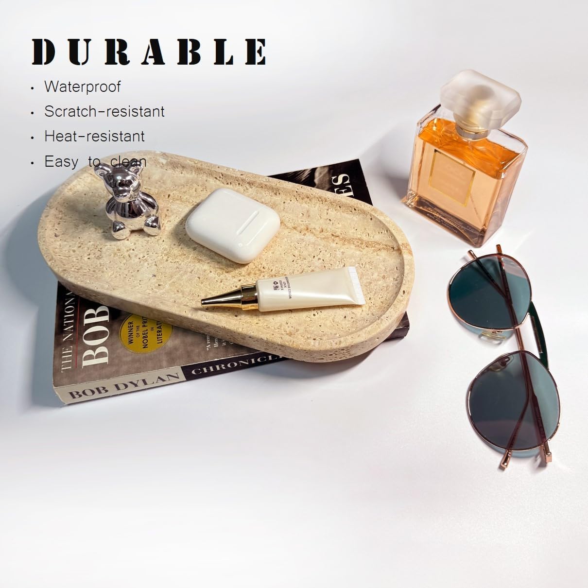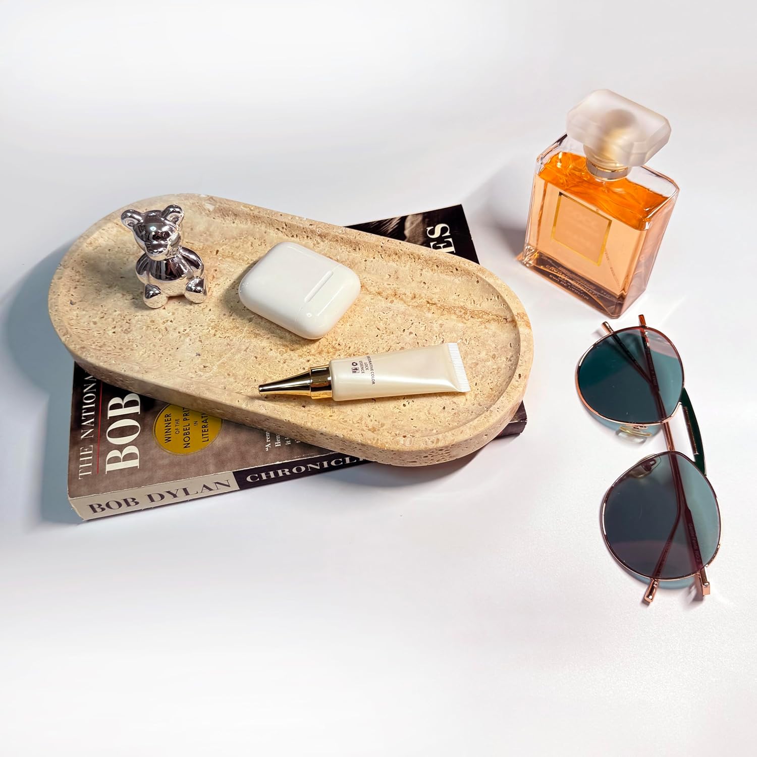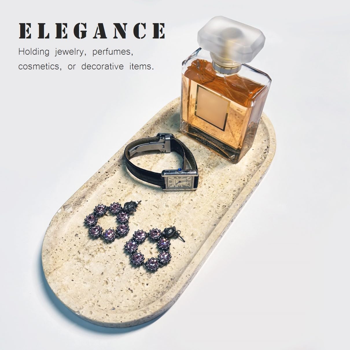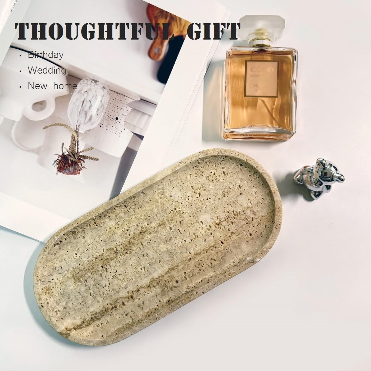 - NATURAL TRAVERTINE FROM TURKEY: Made from premium travertine stone sourced in Denizli, Turkey. This travertine oval tray showcases the natural beauty of stone with balanced pores and smooth texture. A durable luxury stone tray that is waterproof, stain-resistant, and perfect as a decorative tray for jewelry, perfume, or candles