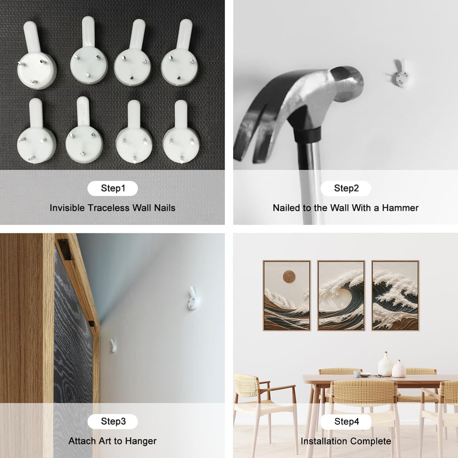 - 【Simple To Install】Each of these three abstract waves landscape art prints pieces measures 16x24inches. It comes with all the necessary accessories so it's simple and easy to install. Simply choose where you want to decorate, make sure it's level and aligned the way you want it, and then nail it down with non-marking nails.