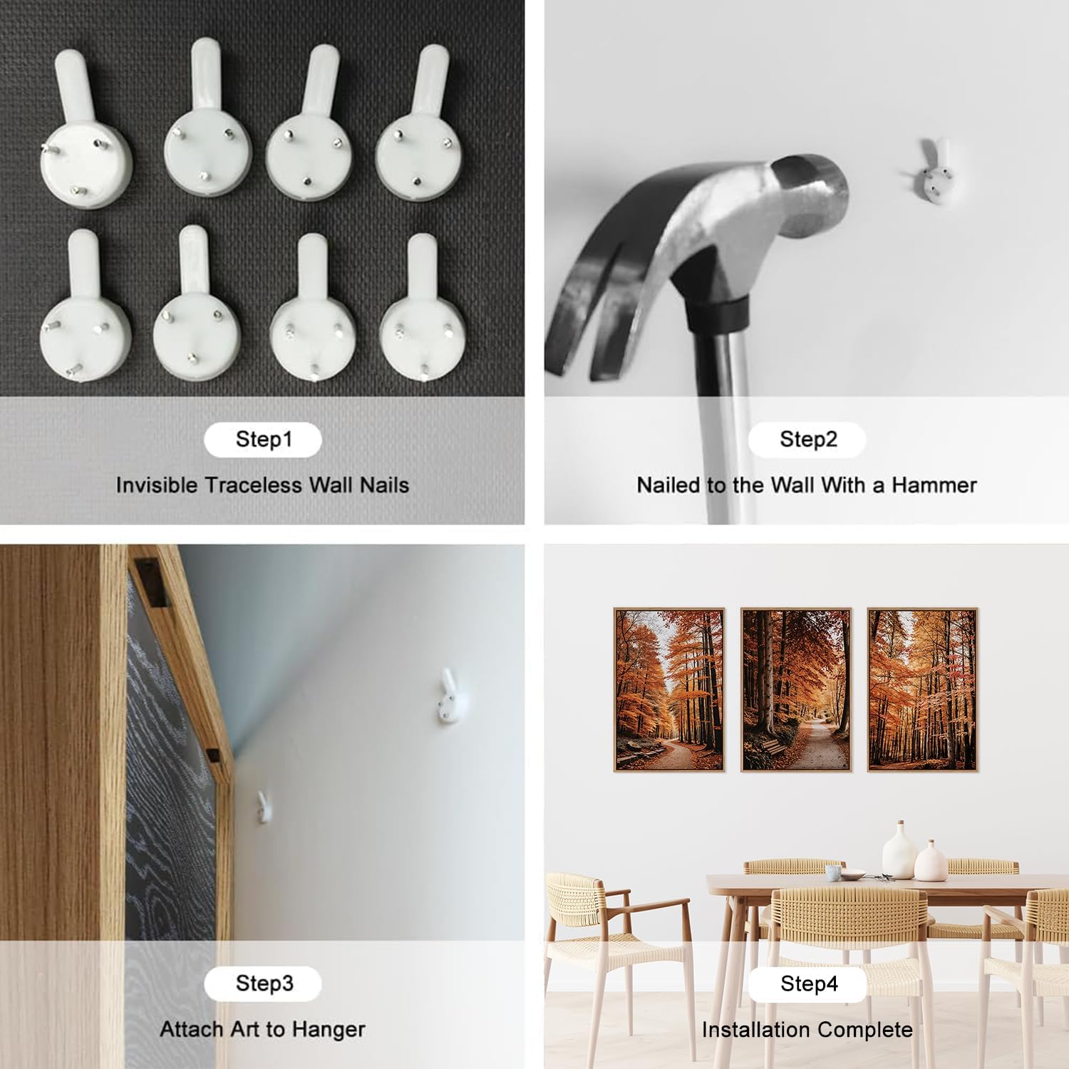 - Simple To Install: Each of these three autumn trees trail landscape art prints pieces measures 16x24inches. It comes with all the necessary accessories so it's simple and easy to install. Simply choose where you want to decorate, make sure it's level and aligned the way you want it, and then nail it down with non-marking nails.